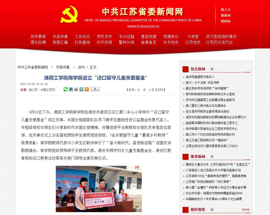 淮阴工学院坐落于周恩来总理家乡,学校党委秉持“扎根淮安办学,服务地方发展”理念,主动对接地方经济社会发展需求,扎实开展人才培养、科学研究、社会服务、文化传承与创新工作,获得广泛好评。在我国全面建成小康社会,开启全面建设社会主义现代化国家新征程,奋力推进乡村振兴重大战略之际,商学院党委围绕“学党史、悟思想、办实事、开新局”主题,按照“学史明理、学史增信、学史崇德、学史力行”要求,经过深入调研决定在苏北革命老区、车桥战役发生地淮安市淮安区车桥镇泾口片区设立“泾口留守儿童关爱基金”,用以资助泾口中学、泾口中心小学和泾口第二中心小学三所学校品学兼优、家庭经济困难的留守儿童,同时表彰为关爱留守儿童作出突出贡献的乡村教师,把孩子们培养成为习近平总书记给新安小学少先队员回信中所希望的“从小坚定听党话、跟党走的决心,刻苦学习,树立理想,砥砺品格,增长本领,努力实现德智体美劳全面发展”的社会主义建设者和接班人。