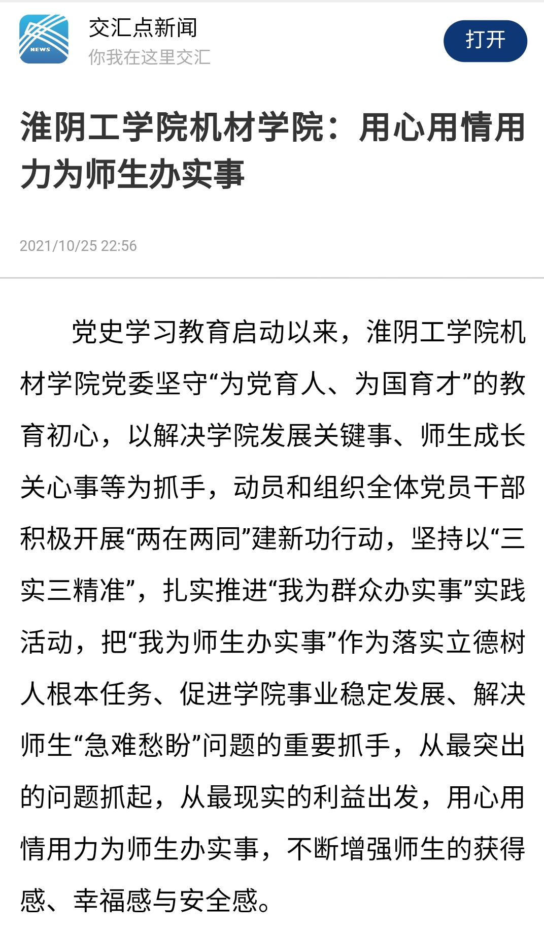 党史学习教育启动以来,淮阴工学院机材学院党委坚守“为党育人、为国育才”的教育初心,以解决学院发展关键事、师生成长关心事等为抓手,动员和组织全体党员干部积极开展“两在两同”建新功行动,坚持以“三实三精准”,扎实推进“我为群众办实事”实践活动,把“我为师生办实事”作为落实立德树人根本任务、促进学院事业稳定发展、解决师生“急难愁盼”问题的重要抓手,从最突出的问题抓起,从最现实的利益出发,用心用情用力为师生办实事,不断增强师生的获得感、幸福感与安全感。