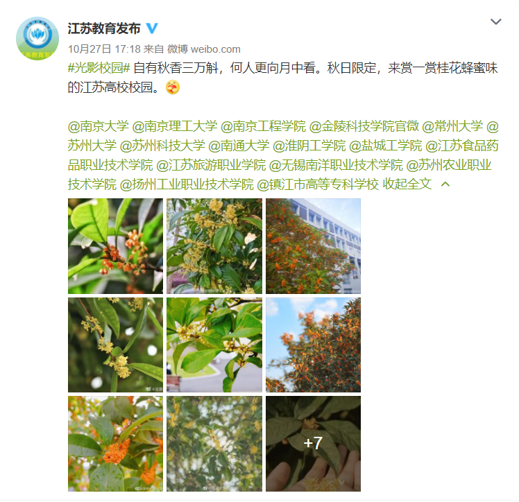 自有秋香三万斛,何人更向月中看。秋日限定,来赏一赏桂花蜂蜜味的江苏高校校园。
