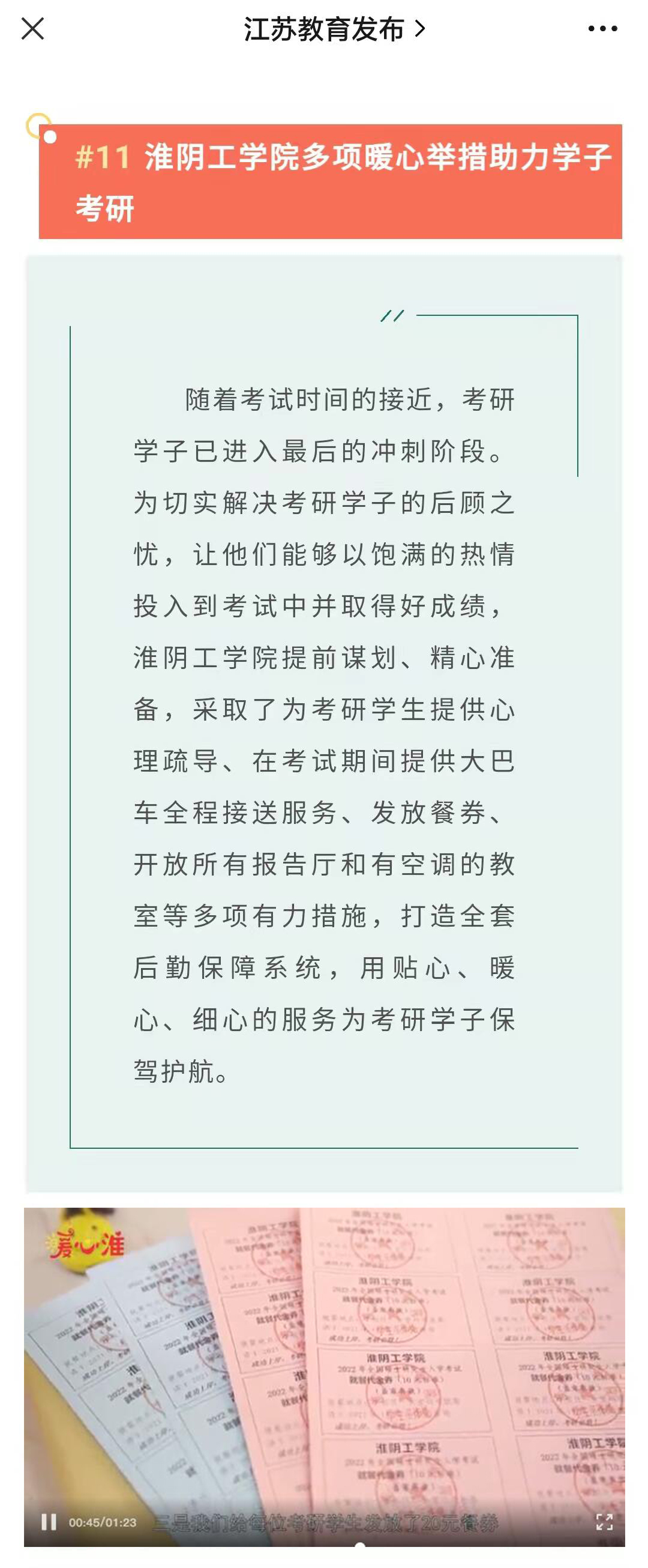下一条:淮安发布丨淮阴工学院为考研学生发放免费餐券