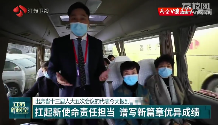江苏台记者王尧说:“我现在就在代表报到的大巴车上,代表们经过一路风尘仆仆,即将抵达驻地。据我了解,在过去的一年里,代表们认真履职、肩负嘱托,深入基层一线进行了大量的走访调研。可以说,过去的一年,也是咱们代表收获满满的一年。”