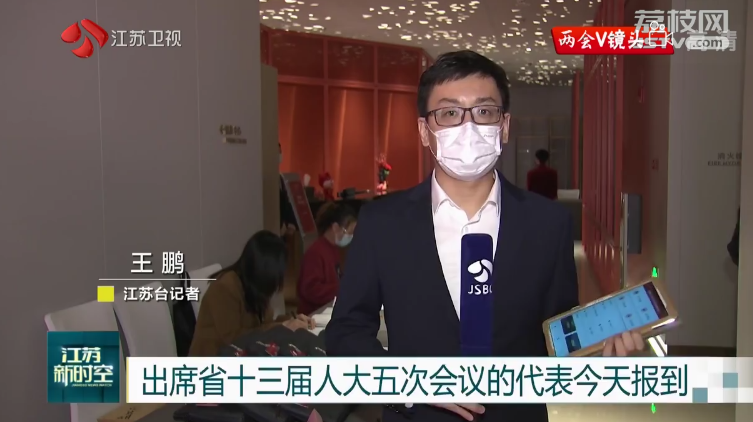 江苏台记者郭艺说:“这里是金陵江滨酒店,我们在现场看到代表们前来报到的时候都要先进行核酸检测,会议期间也将全程采取闭环管理,会务组也为代表们准备了防疫健康包,将通过这些严格而细致的防疫举措确保大会顺利进行。”