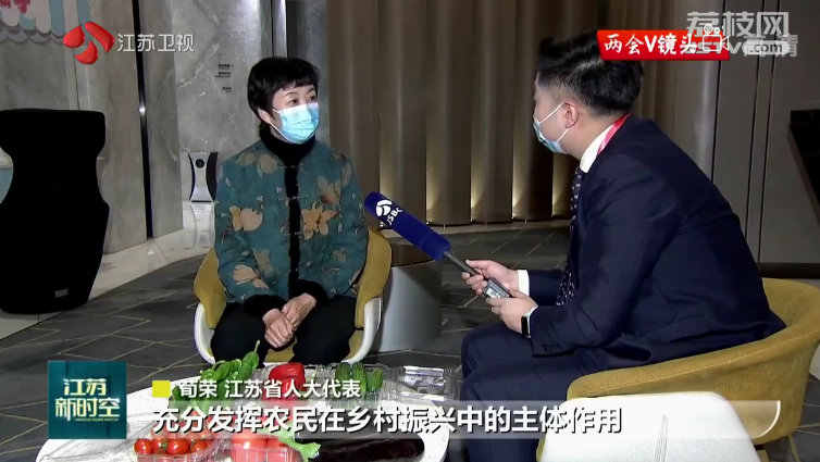 江苏省人大代表荀荣说:“这是我们带动农民种植的产品,这些产品在去年都得到了非常好的收入,我这次带来的建议是充分发挥农民在乡村振兴中的主体作用。”