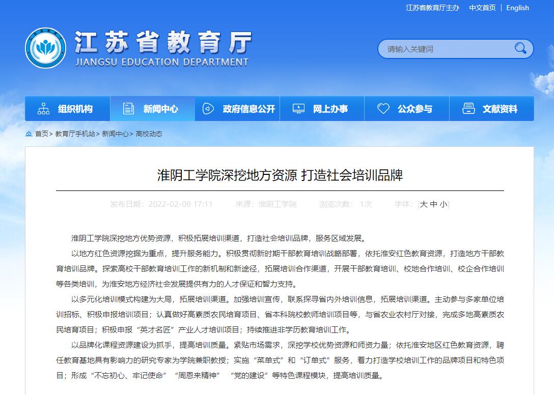 淮阴工学院深挖地方优势资源,积极拓展培训渠道,打造社会培训品牌,服务区域发展。