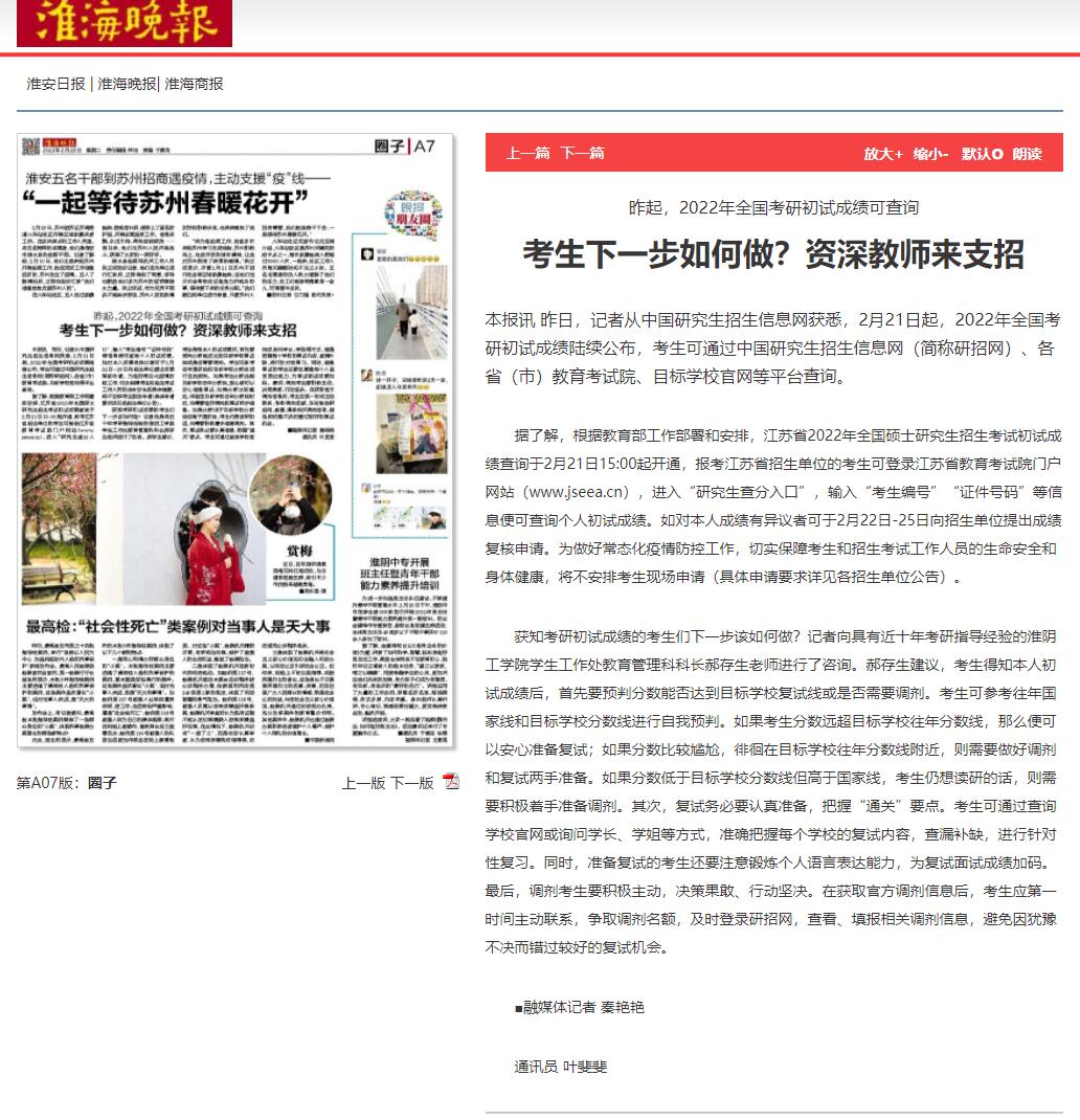 获知考研初试成绩的考生们下一步该如何做?记者向具有近十年考研指导经验的淮阴工学院学生工作处教育管理科科长郝存生老师进行了咨询。郝存生建议,考生得知本人初试成绩后,首先要预判分数能否达到目标学校复试线或是否需要调剂。考生可参考往年国家线和目标学校分数线进行自我预判。如果考生分数远超目标学校往年分数线,那么便可以安心准备复试;如果分数比较尴尬,徘徊在目标学校往年分数线附近,则需要做好调剂和复试两手准备。如果分数低于目标学校分数线但高于国家线,考生仍想读研的话,则需要积极着手准备调剂。其次,复试务必要认真准备,把握“通关”要点。考生可通过查询学校官网或询问学长、学姐等方式,准确把握每个学校的复试内容,查漏补缺,进行针对性复习。同时,准备复试的考生还要注意锻炼个人语言表达能力,为复试面试成绩加码。最后,调剂考生要积极主动,决策果敢、行动坚决。在获取官方调剂信息后,考生应第一时间主动联系,争取调剂名额,及时登录研招网,查看、填报相关调剂信息,避免因犹豫不决而错过较好的复试机会。