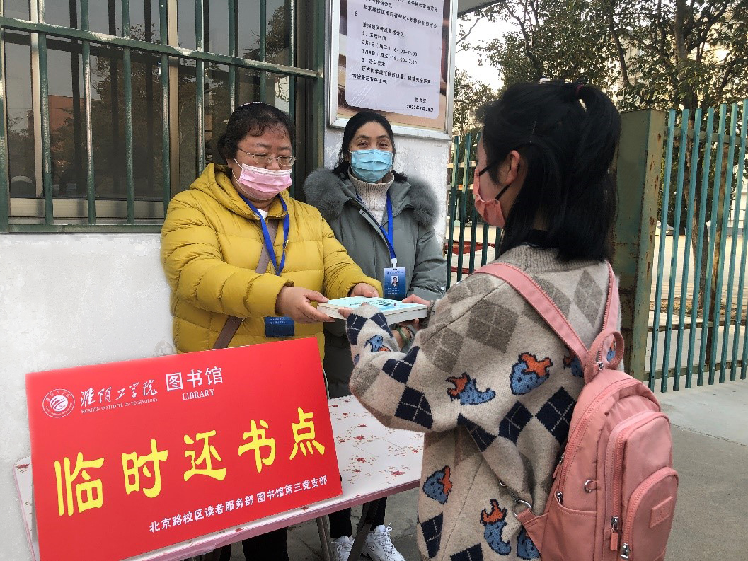 常态化疫情防控期间,图书馆不断创新工作方式,保障图情服务不断线。为避免人群聚集,开学前四周实行线上教学,学生在宿舍上网课非必要不外出。但是有部分学生所借图书即将超期,学生多次电话或留言咨询相关事宜,比较焦虑因超期还书会带来罚款,甚至有的担心会影响毕业。图书馆在耐心安抚学生情绪的基础上,应需求变,发动3个党支部在枚乘路、北京路、萧湖三个校区学生宿舍区设立5个“临时还书点”,及时帮助学生办理即将超期图书或其他想还图书的还书手续,解决了学生的燃眉之急。
