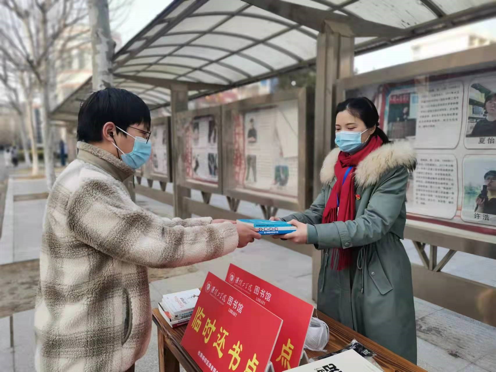 日前,在学生宿舍区的“临时还书点”,淮阴工学院图书馆“还书上门”服务火热开展,工作人员热心帮助学生办理还书手续。