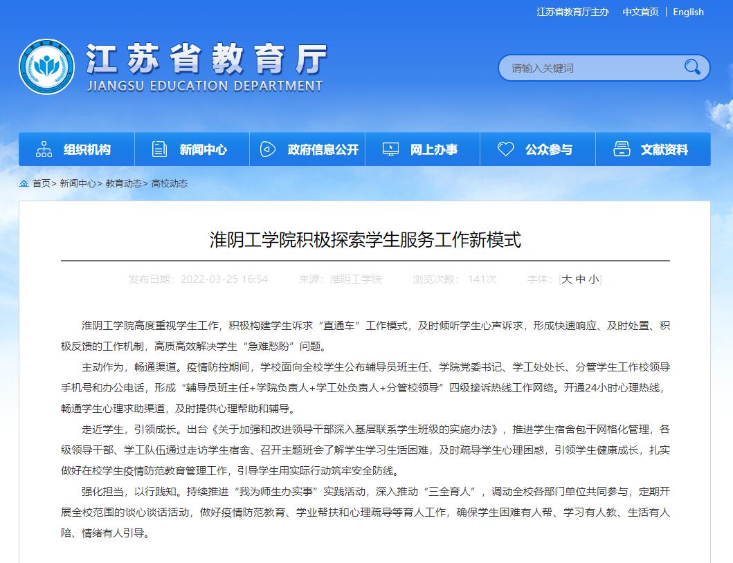 淮阴工学院高度重视学生工作,积极构建学生诉求“直通车”工作模式,及时倾听学生心声诉求,形成快速响应、及时处置、积极反馈的工作机制,高质高效解决学生“急难愁盼”问题。