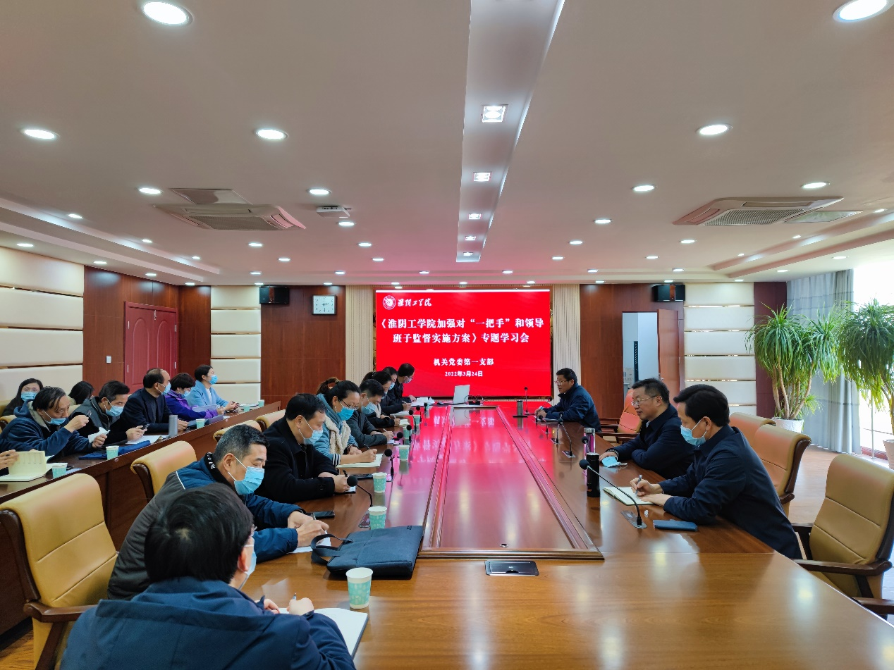 为深入贯彻落实学校全面从严治党大会精神,推动机关党委全面从严治党向纵深发展,淮阴工学院机关党委及时召开党委会布置相关工作,组织各党支部认真学习《淮阴工学院加强对“一把手”和领导班子监督实施方案》等文件精神。截至3月25日,机关党委所属十二个党支部结合各部门工作实际,通过集中研学、党员自学、研讨交流等多种形式,圆满完成学习任务。
