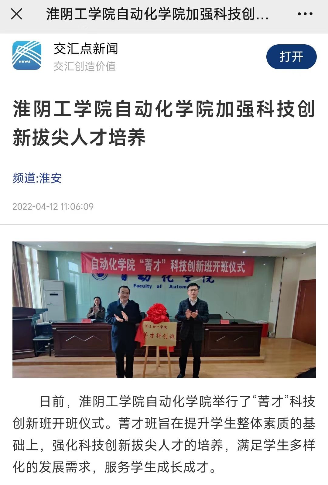 日前,淮阴工学院自动化学院举行了“菁才”科技创新班开班仪式。菁才班旨在提升学生整体素质的基础上,强化科技创新拔尖人才的培养,满足学生多样化的发展需求,服务学生成长成才。