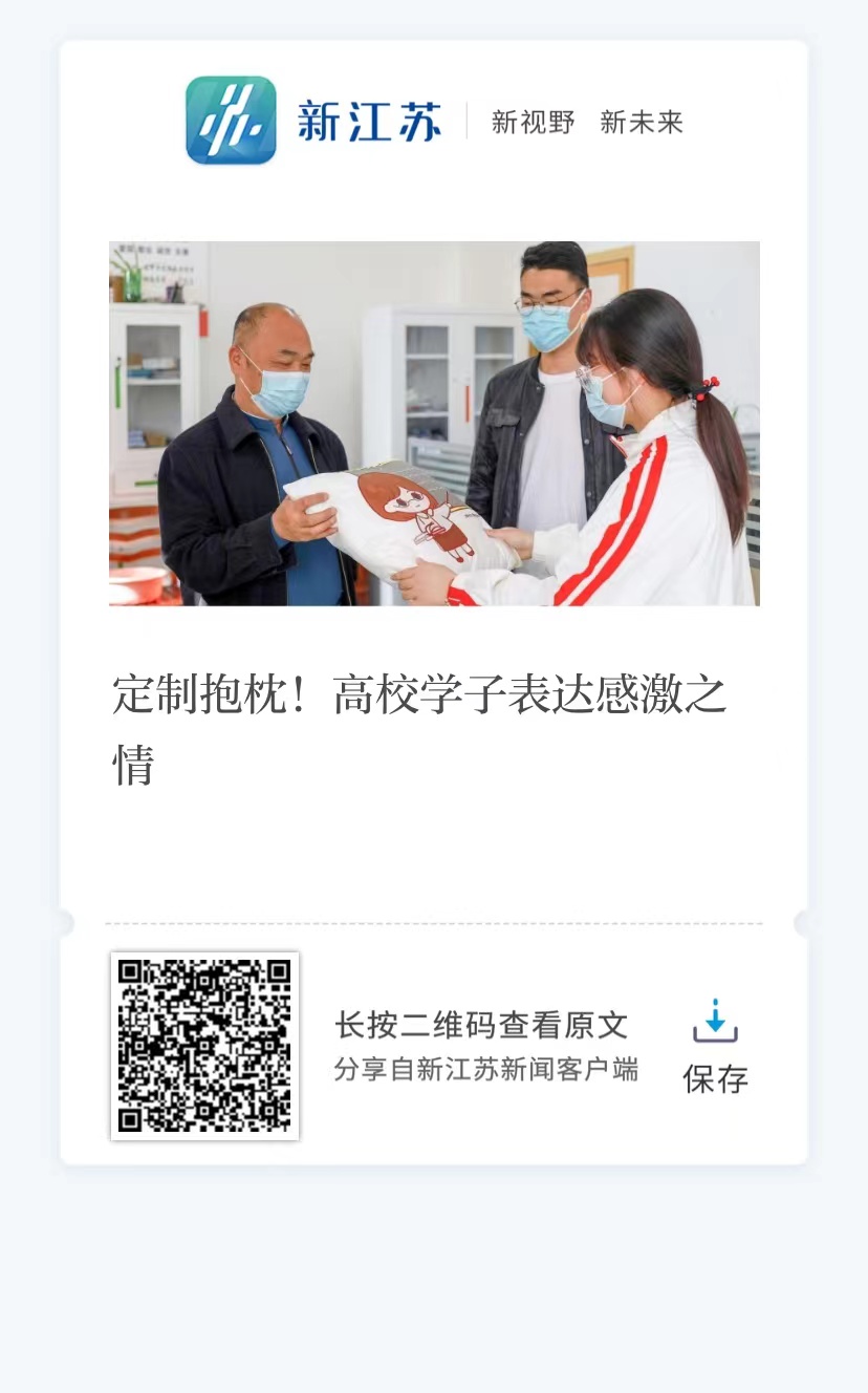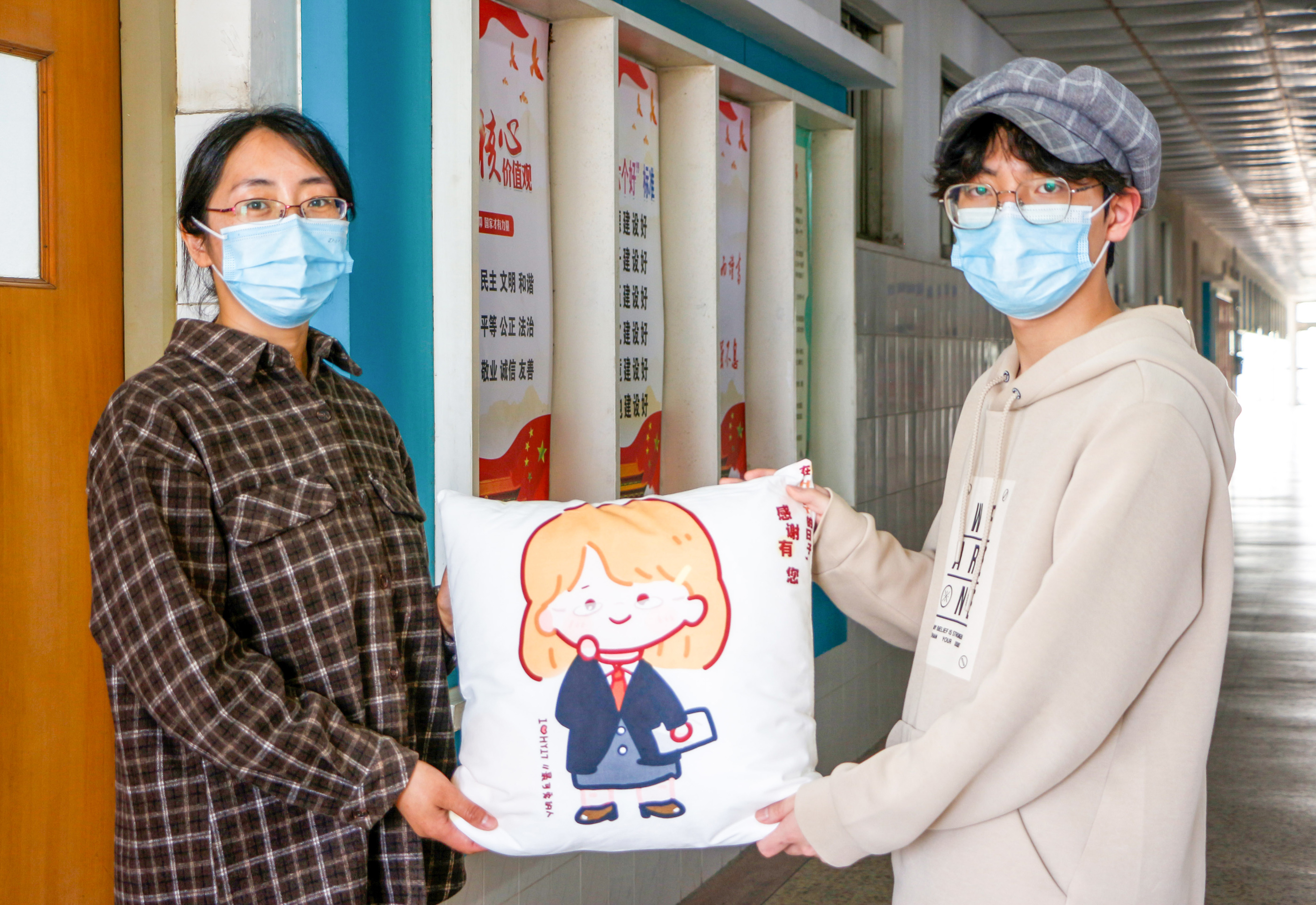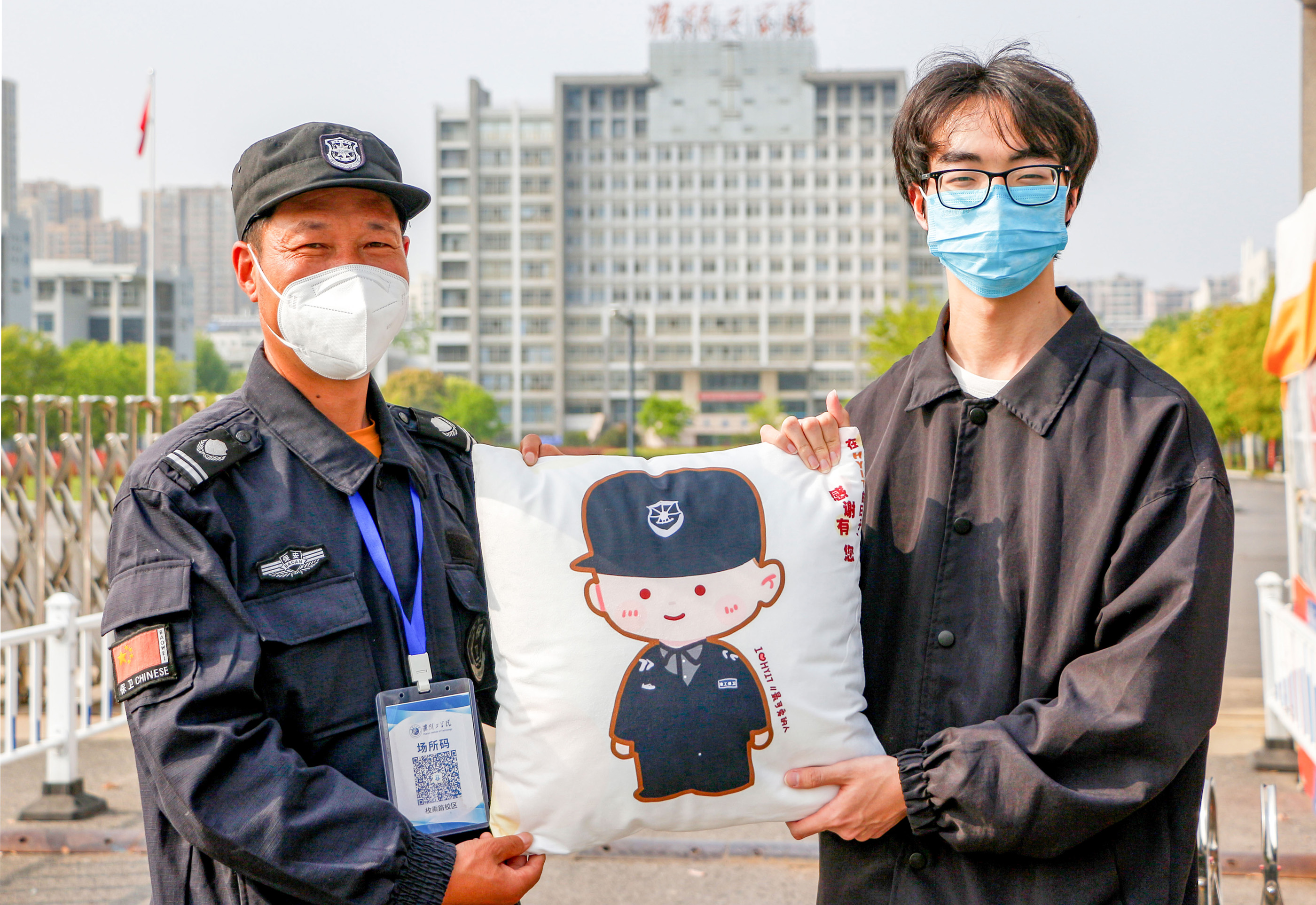 手绘图案、定制抱枕、温暖传情……连日来,淮阴工学院学子精心设计了10个学校工作人员形象,并于五一前送至该院辅导员、医务人员、宿管阿姨、食堂阿姨、保安叔叔等工作人员手中。学子通过这种形式表达了在当前严峻复杂的疫情防控形势下,全院教职员工为全力保障学子们的学习生活,辛勤付出的感激之情。