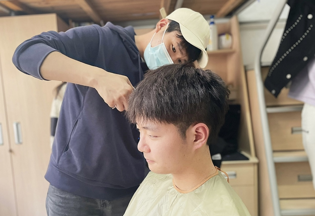 近日,应用技术学院的一支“Tony”团队悄然出现在学生宿舍里。“刚开始确实有点担心,不过最后理出来的头发还不错,超出了预期,Tony老师还顺便给我修了个眉毛。”第一位贡献自己秀发的戚厚宇笑着说。由土木3211班梁子琪、徐铨烽、仲金波三位同学组建的“Tony”团队正大展拳脚为同学们解决“头”等大事。