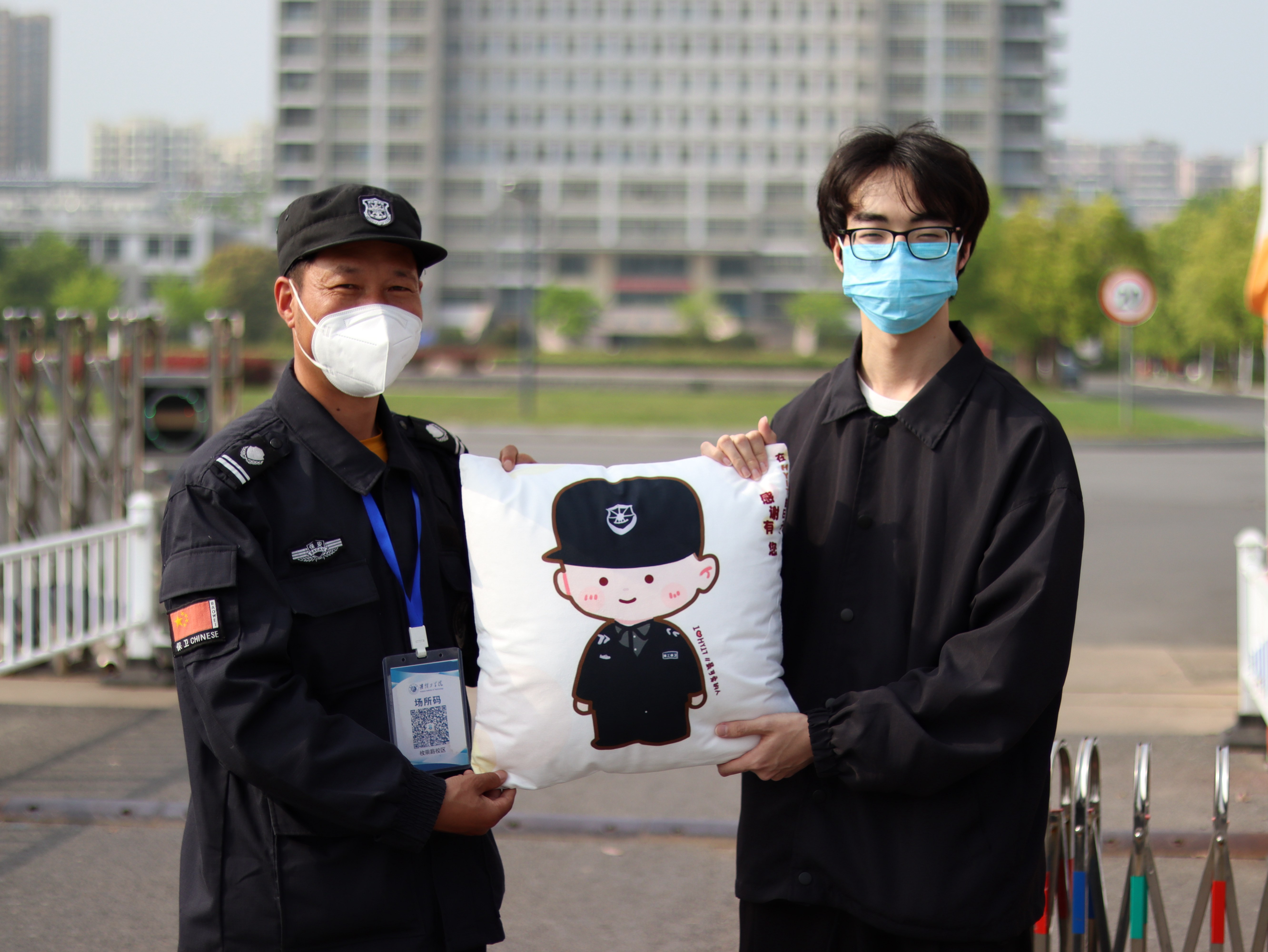“收到抱枕真的很开心!孩子们太用心了,让我觉得工作特别有意义!”接过抱枕,保卫叔叔忍不住跟学生合照起来。