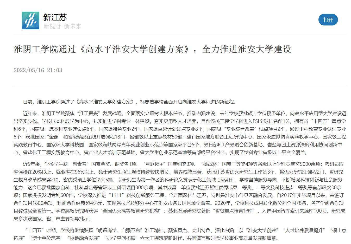 日前,淮阴工学院通过了《高水平淮安大学创建方案》,标志着学校全面开启向淮安大学迈进的新征程。