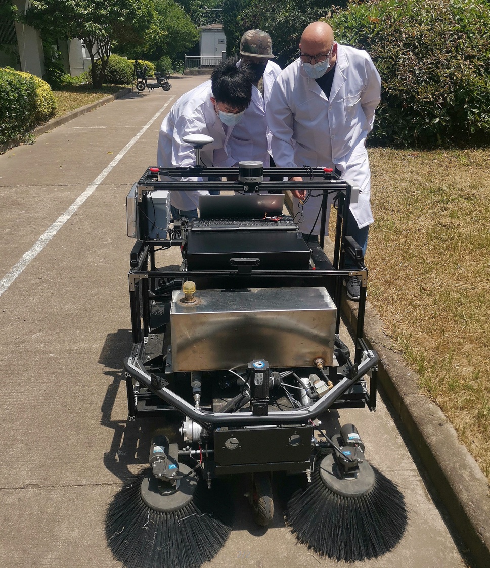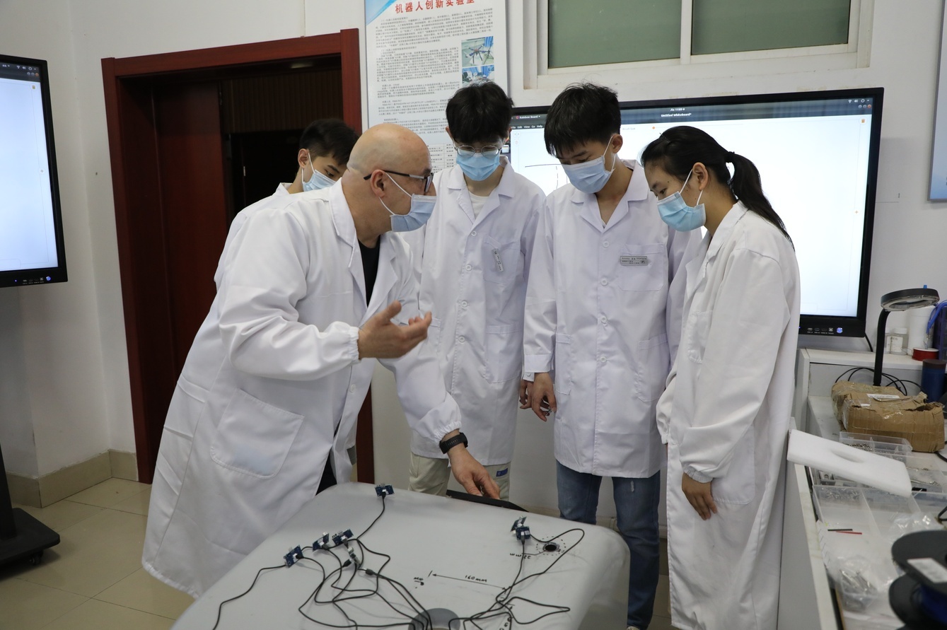 首席外国专家Amir博士带领师生们研究如何将智能机器人应用于疫情防控,团队成员们废寝忘食进行项目攻关,解决了一个个技术难题,在已有机器人基础上,先后开发运送机器人、扫地机器人、四足机器狗等智能机器人及程序,替代师生完成物品运送、校园清扫等工作,减少非必要接触。既有助于校园疫情防控,提高师生的防控意识,又培养学生对人工智能的学习热情,锻炼了学生的创新实践能力。