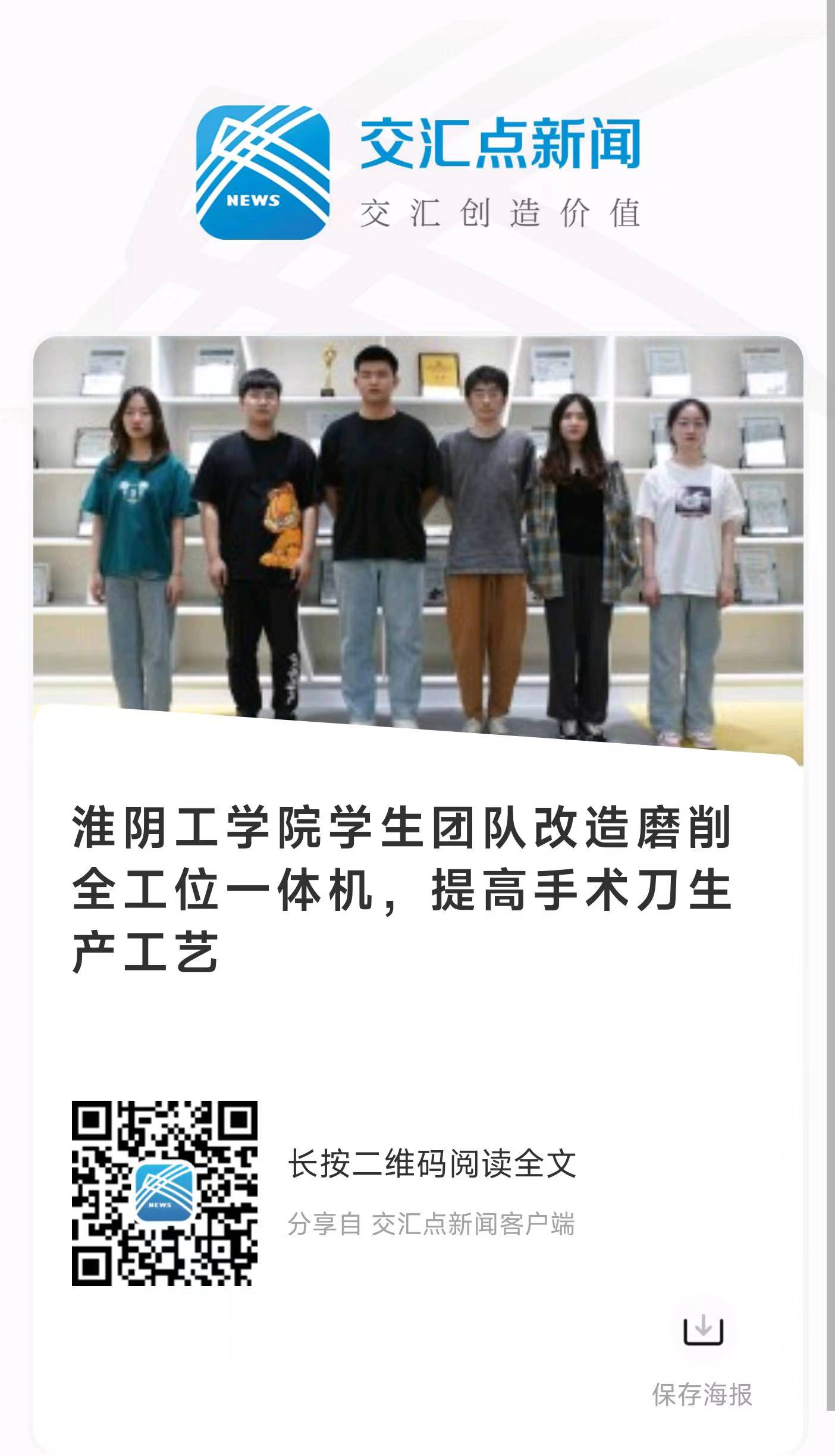 “成功了!手术刀磨削全工位一体机终于成功产出了手术刀!我们真的成功了!”实验室响起一阵欢呼声。淮阴工学院自动化学院“柳叶飞刀”项目团队经过两年多的实验,终于成功改造出手术刀磨削全工位一体机。