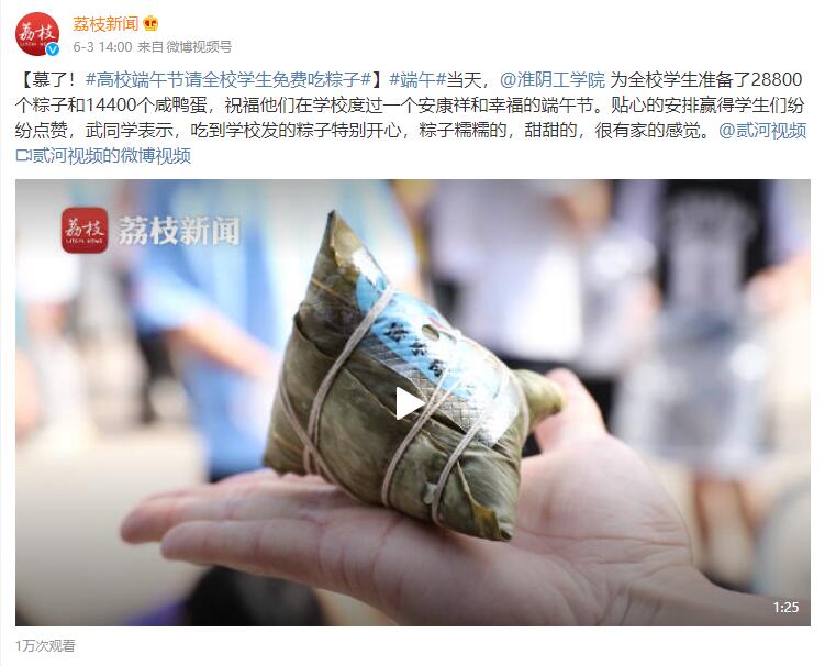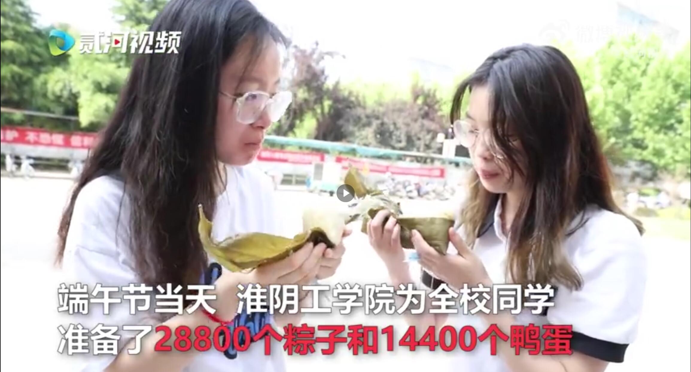 午当天,淮阴工学院为全校学生准备了28800个粽子和14400个咸鸭蛋,祝福他们在学校度过一个安康祥和幸福的端午节。贴心的安排赢得学生们纷纷点赞,武同学表示,吃到学校发的粽子特别开心,粽子糯糯的,甜甜的,很有家的感觉。