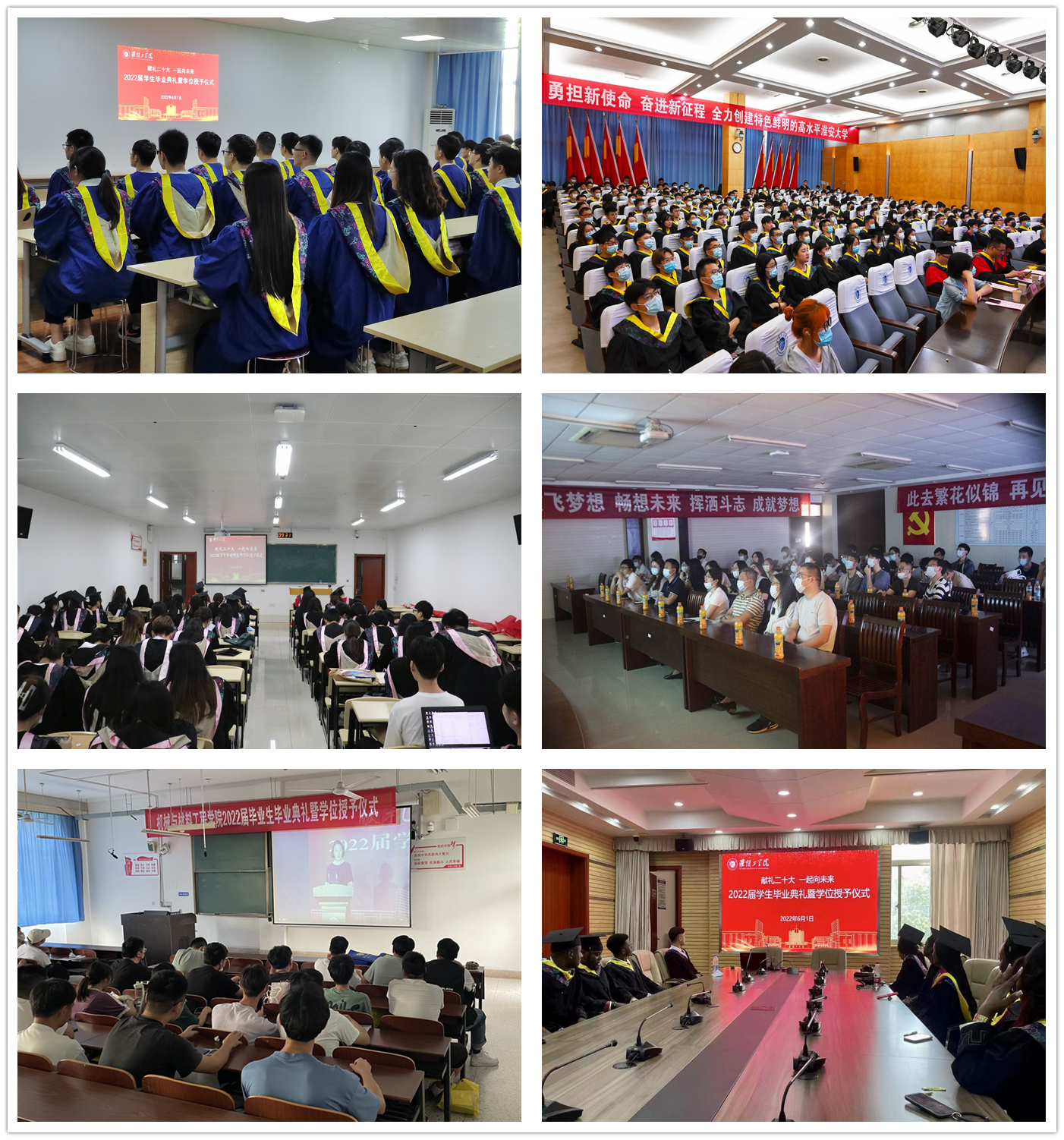 党政办、组织部、宣传部、研究生处、学工处、保卫处、教务处、招就处、后勤处、萧湖管委会、团委等部门主要负责人,二级学院党政主要负责人、分管学生工作负责人、毕业班辅导员和班主任代表以及2022届毕业生代表参加了活动。