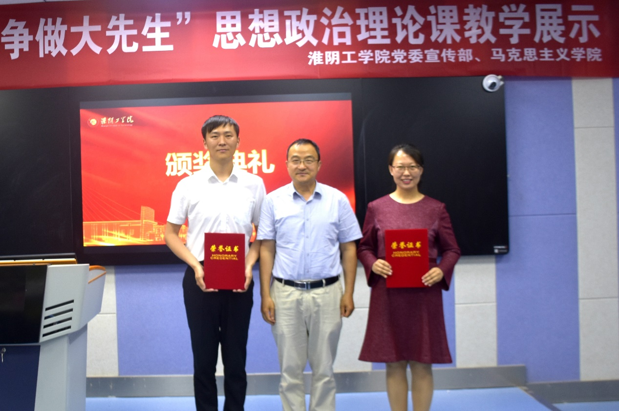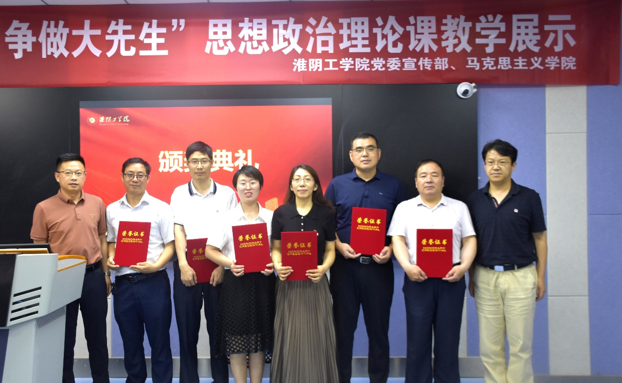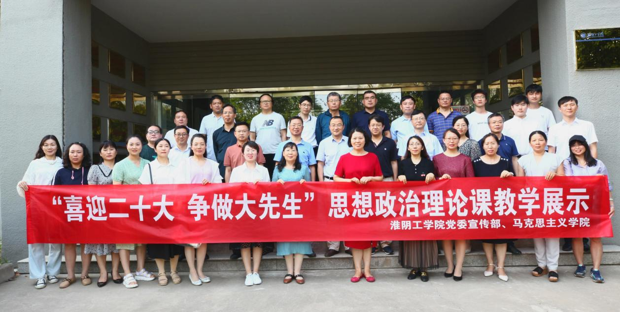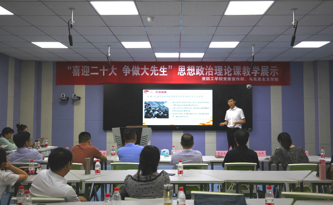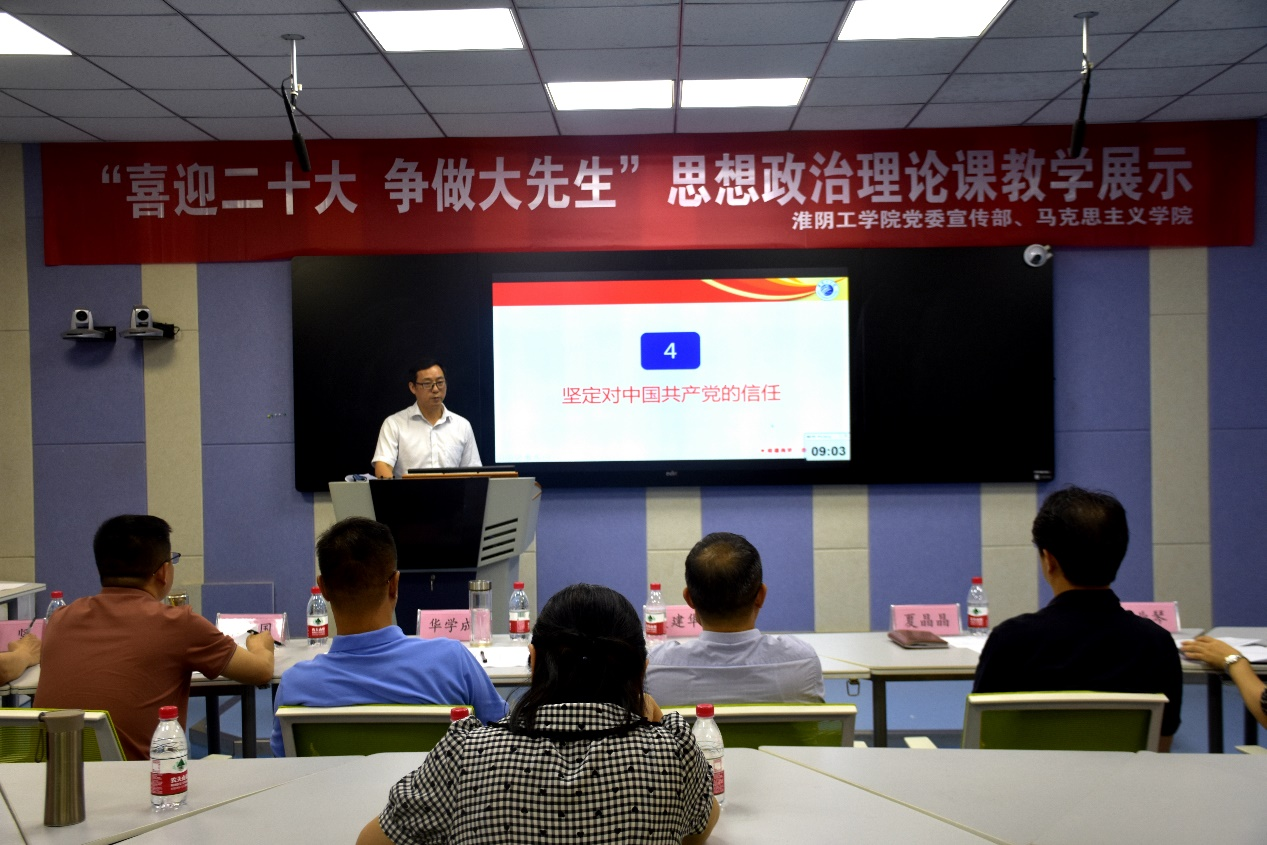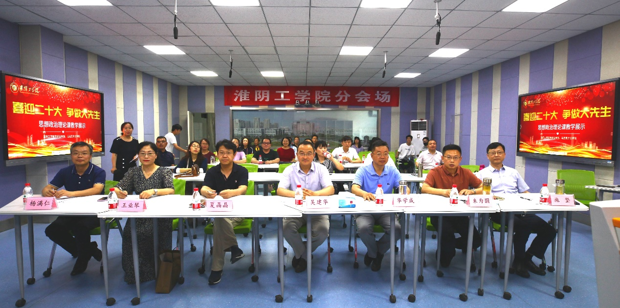 日前,淮阴工学院马克思主义学院在枚乘路校区卓行楼105室举行“喜迎二十大 争做大先生”思想政治理论课教学展示总决赛。党委副书记、副校长吴建华,党委常委、宣传部部长华学成出席教学展示活动并担任评委。