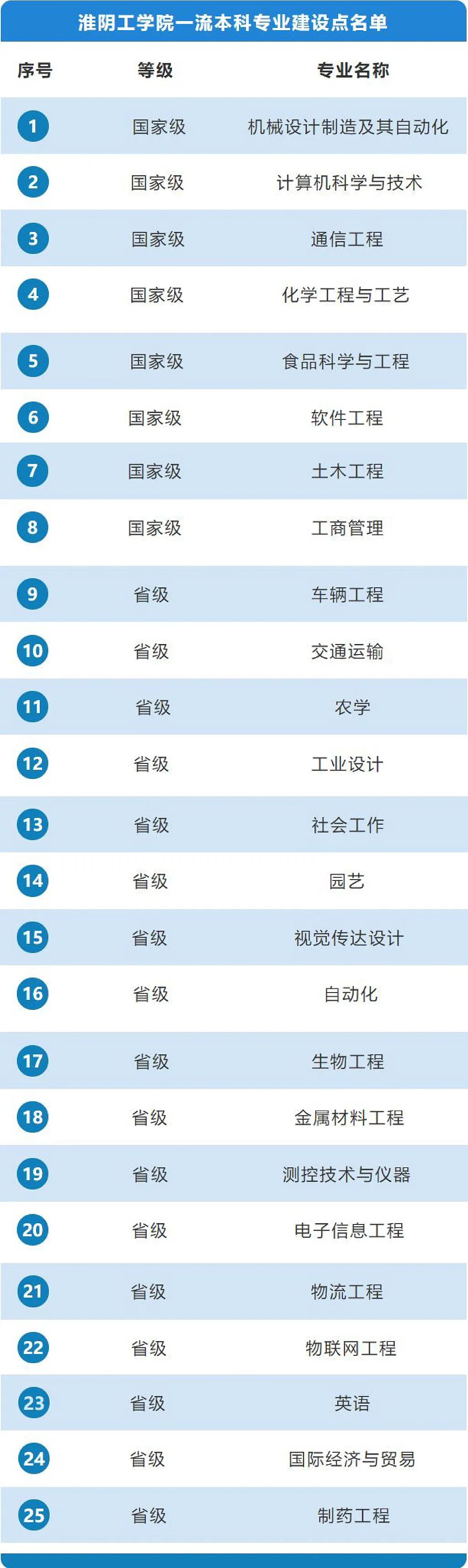 近日,教育部办公厅公布了2021年度国家级和省级一流本科专业建设点名单,淮阴工学院土木工程和工商管理2个专业获批国家级一流本科专业建设点,生物工程、金属材料工程等11个专业获批江苏省一流本科专业建设点。截至目前,学校已获批8个国家级一流本科专业建设点,17个省级一流本科专业建设点。