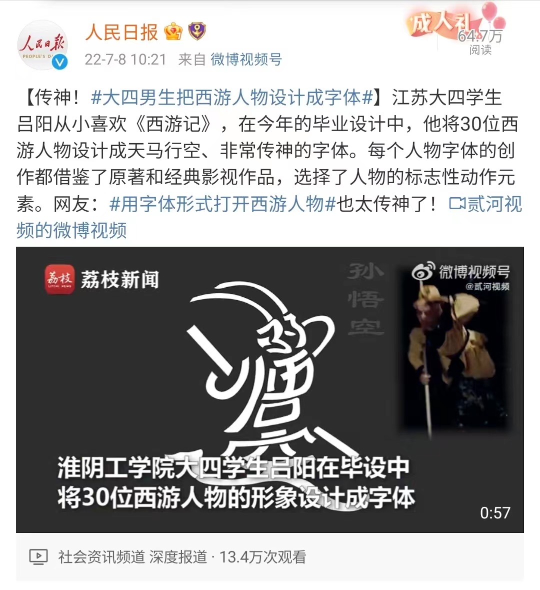 下一条:荔枝新闻丨仙气拉满!男生将30位西游人物设计成字体