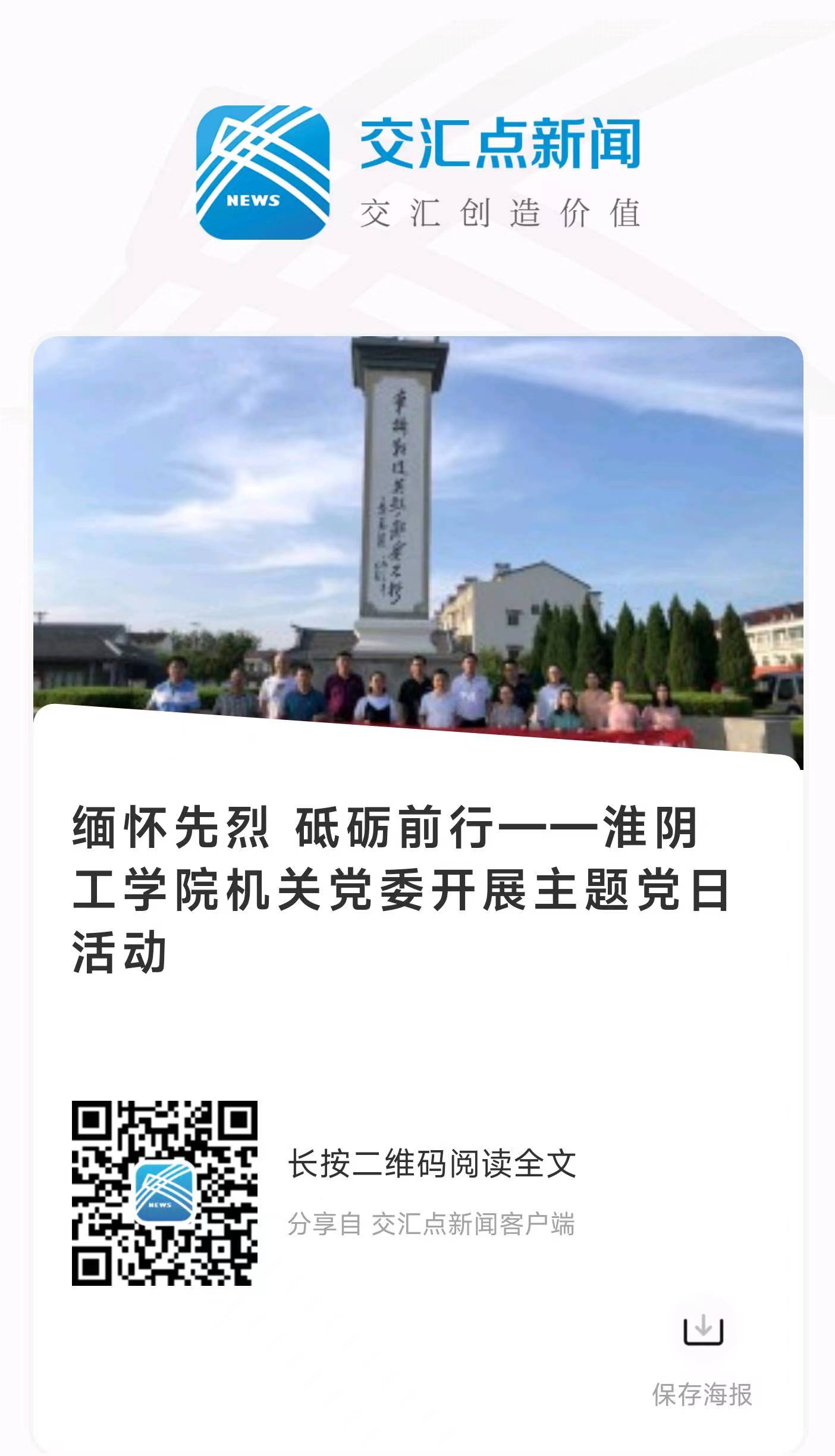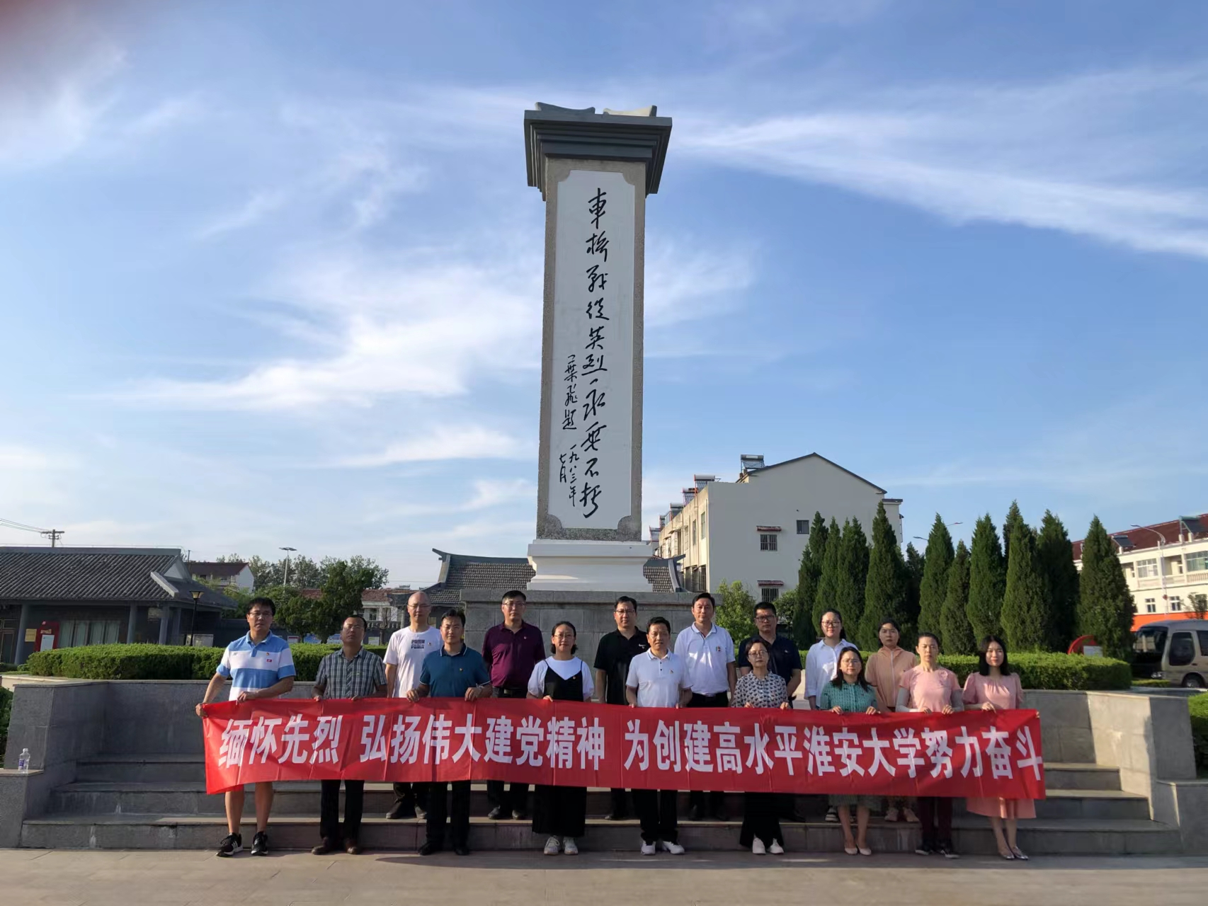 烈日炎炎,阻挡不了党员们缅怀先烈、砥砺前行的步伐和决心。为用好淮安红色资源,深入推进党史学习教育常态化长效化,践行伟大建党精神,为学校顺利实施十四五规划、成功创建高水平淮安大学凝聚力量,近日,淮阴工学院机关党委组织全体党委委员和新设立的两个党支部全体成员赴车桥战役纪念馆,开展以“缅怀先烈 弘扬伟大建党精神 为创建高水平淮安大学努力奋斗”为主题的党日活动。