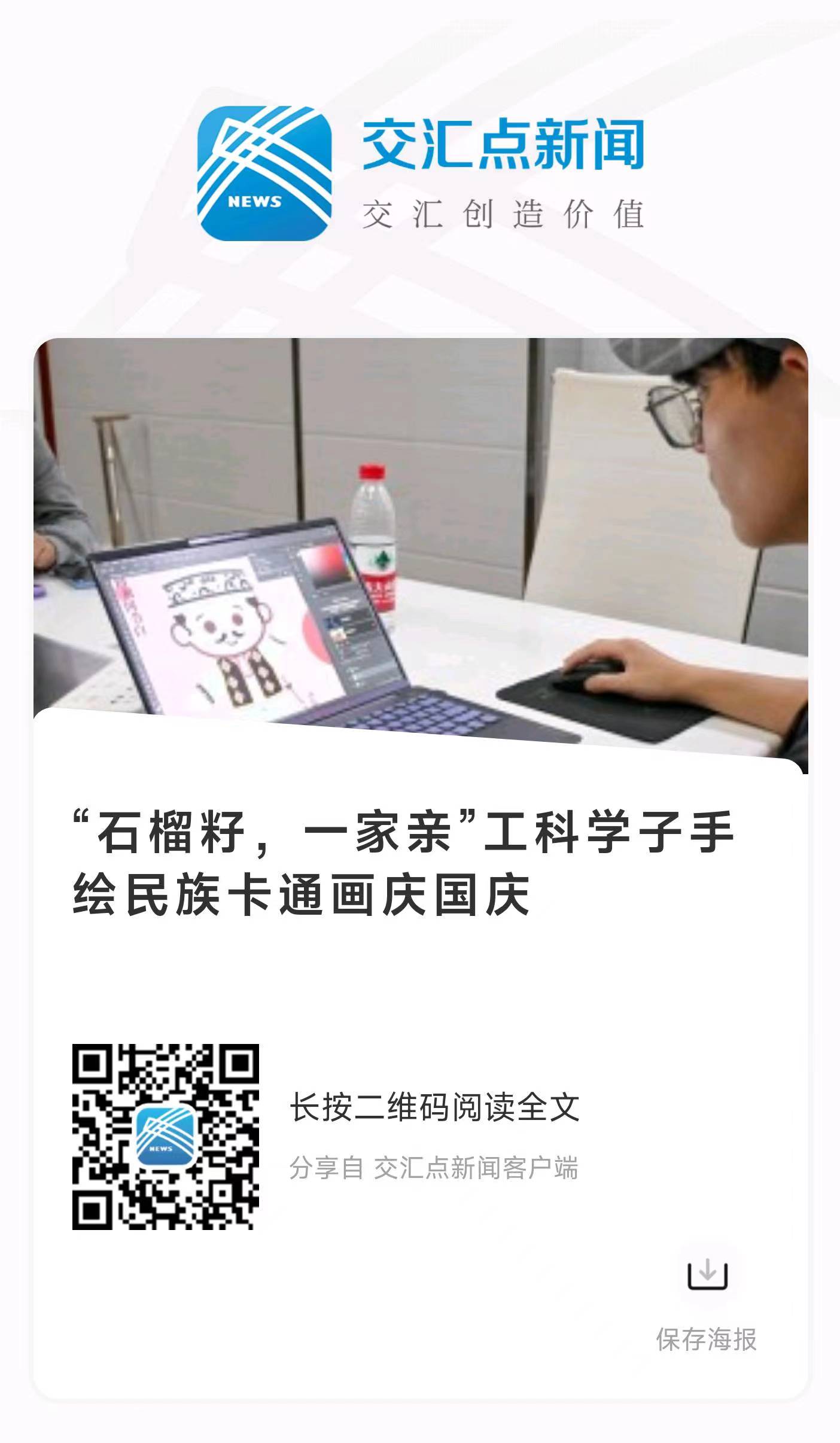 “学生们很有创作热情,自学了各种手绘软件。”指导老师杨建告诉记者,国庆期间很多学生选择留校,为了让他们感受浓厚的国庆氛围,学校组织了一系列主题活动,如社团巡礼节、草坪音乐节、露天观影活动等,卡通画设计团队虽然都是理工科学生,但他们都很有想法,而且动手能力强,手绘人物形象不仅是理工科学子展示才华的一个途径,也是学生们表达中华民族一家亲,同心共筑中国梦的美好祝愿。