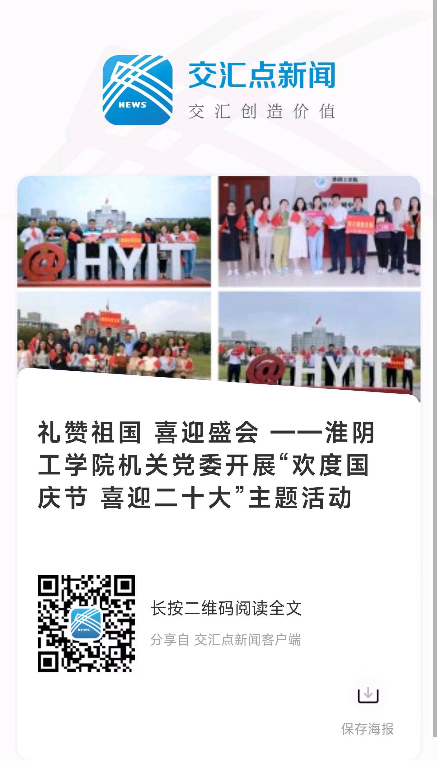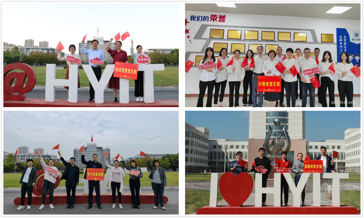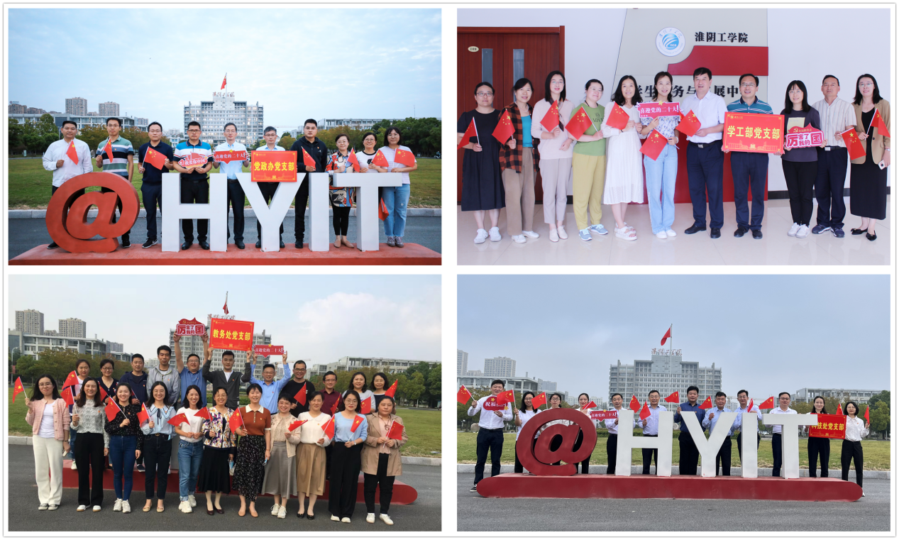 近日,淮阴工学院机关党委组织发起了“欢度国庆节 喜迎二十大”主题活动,机关党委30个党支部积极响应,纷纷开展了与国旗合影、唱红歌、观看红色主题电影等灵活多样、参与度高、吸引力强的庆祝活动。校领导以普通党员身份参加庆祝活动。