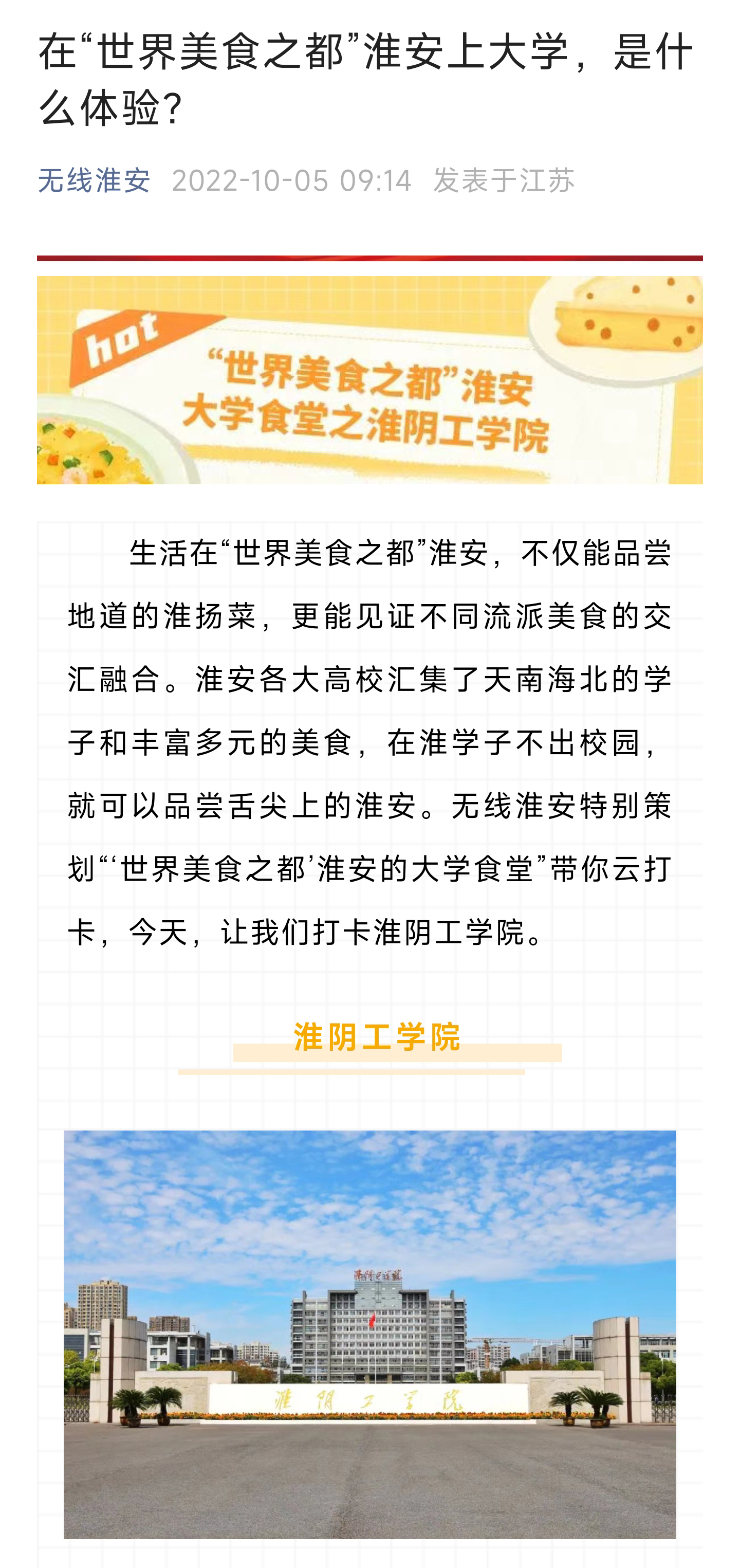 生活在“世界美食之都”淮安,不仅能品尝地道的淮扬菜,更能见证不同流派美食的交汇融合。淮安各大高校汇集了天南海北的学子和丰富多元的美食,在淮学子不出校园,就可以品尝舌尖上的淮安。无线淮安特别策划“‘世界美食之都’淮安的大学食堂”带你云打卡,今天,让我们打卡淮阴工学院。