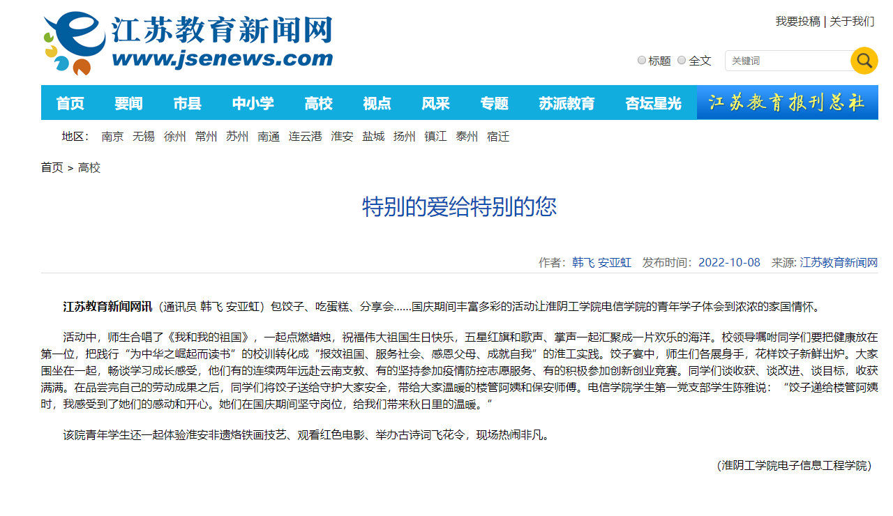 包饺子、吃蛋糕、分享会……国庆期间丰富多彩的活动让淮阴工学院电信学院的青年学子体会到浓浓的家国情怀。