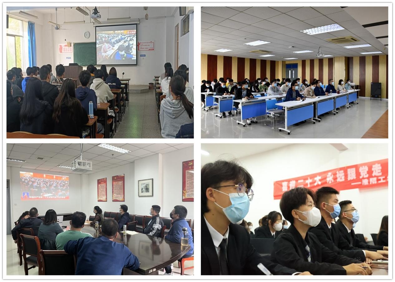 党委书记孙爱武说:“党的二十大报告举旗帜、定方向、明方略、绘蓝图,鼓舞人心,催人奋进,报告提出的一系列重要思想、重要观点、重大判断、重大举措,对于我们党团结带领全国各族人民夺取中国特色社会主义新胜利、奋力谱写全面建设社会主义现代化国家崭新篇章、向第二个百年奋斗目标进军具有重大而深远的意义,也对于我们高校做好自己的事情具有重大统领和理论指导意义。我们要学习宣传贯彻好党的二十大精神,继续深化学习领会习近平新时代中国特色社会主义思想,深刻领悟‘两个确立’的决定性意义,不断增强政治判断力、政治领悟力、政治执行力,坚持‘国之大计、党之大计’的战略地位,贯彻‘为党育人、为国育才’的总体要求,落实立德树人根本任务,全面贯彻党的教育方针,紧扣学校‘十四五’发展战略与目标,持续实施‘淮工振兴’战略,统筹推进‘十个一流’举措,不断深化教育教学改革,不断转变人才培养方式,推进学校各项事业实现内涵式发展,着力培养堪当民族复兴大任的时代新人,在办好人民满意教育、加快建设教育强国的实践中展现新担当新作为。”
