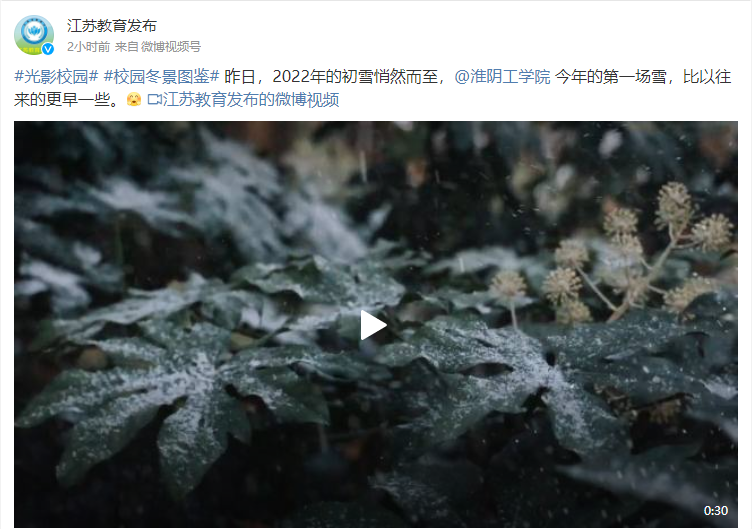 2022年的初雪悄然而至,淮阴工学院今年的第一场雪,比以往来的更早一些。