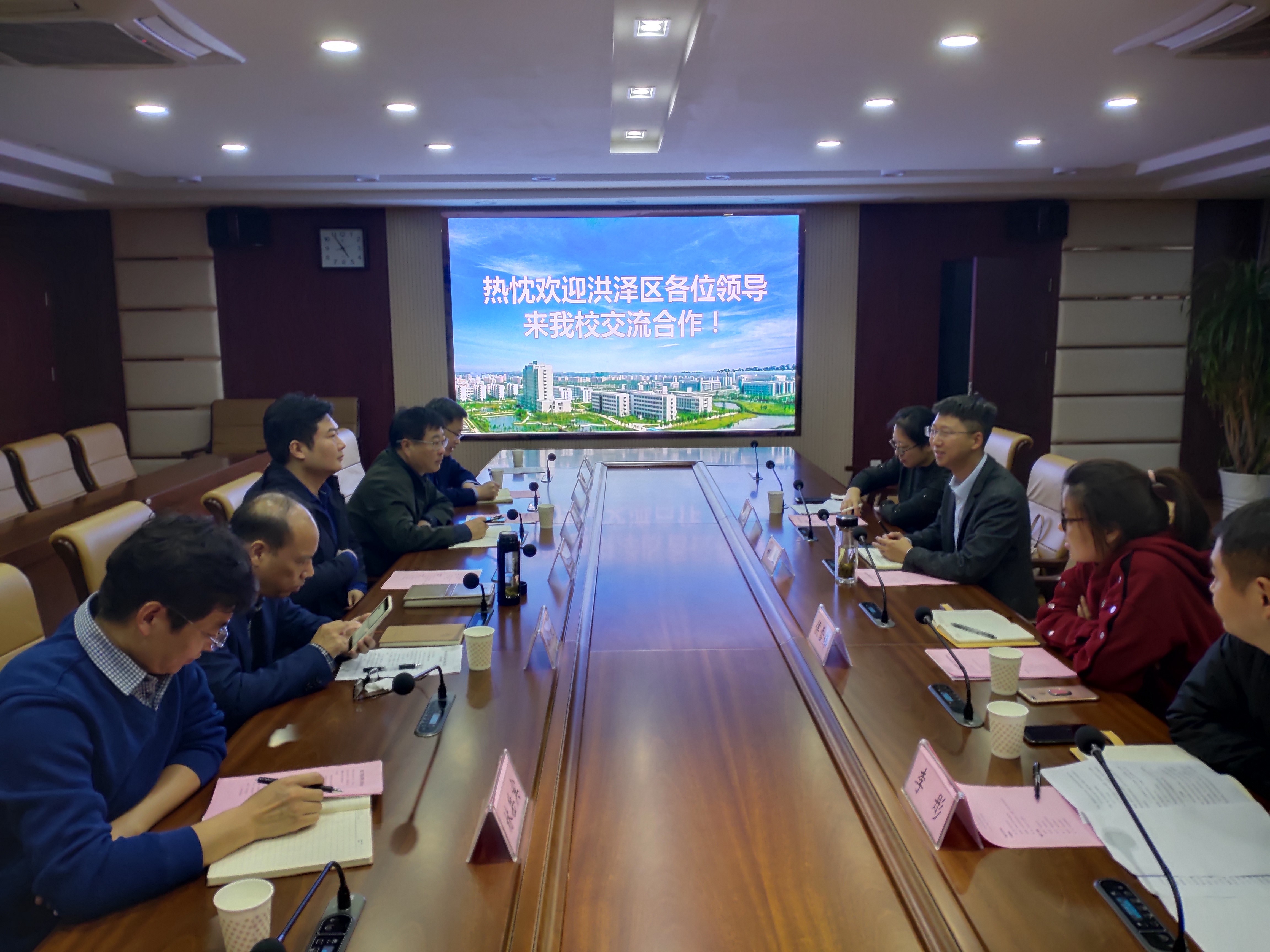 2020年11月18日洪泽区副区长、科技镇长团团长杨强一行来我校就科技合作和人才培养开展对接合作交流。