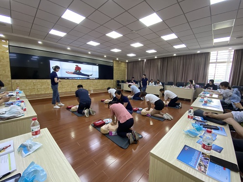 各位专家通过视频展示及现场讲授,阐明了学习急救知识的重要性,详细讲解了心肺复苏、自动体外心脏除颤器使用、海姆立克氏急救法、排除气道异物、创伤急症、内科急症以及环境相关急症等方面的急救理论知识和实践操作,并对参训学员进行现场急救技能实践操作考核。