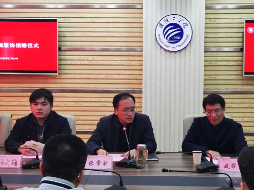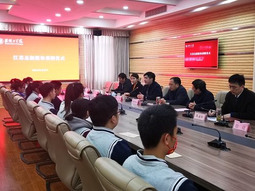 11月19日上午,我校在北京路校区大学生活动中心二楼会议室举办家庭经济困难学生运动服捐赠仪式。江苏圣澜服饰创意有限公司副总经理马之逸、校关工委、学生工作处等负责人、二级学院辅导员老师及受助学生参加了捐赠仪式,学生处副处长王启松主持仪式。