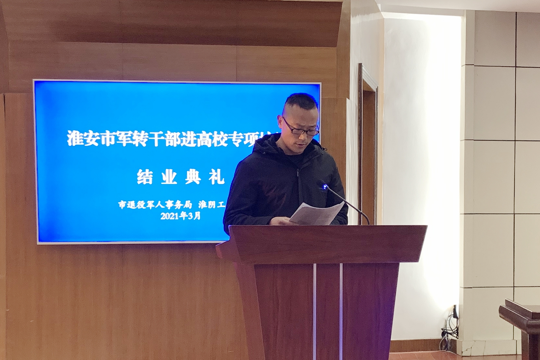 在结业典礼上,许仁良指出,一年来,军转干部们克服种种困难,发扬军队纪律严明的作风,圆满完成了学校安排的各项学习任务,希望学员们在今后的工作、生活中,能够持续保持学习热情,勤学好思,进一步提高干部综合管理水平;始终铭记自己“淮工人”的身份,秉承“明德尚学、自强不息”淮工精神,继续发挥军人能吃苦、能战斗的作风,在新的工作岗位上做出新的贡献,创造新的业绩!