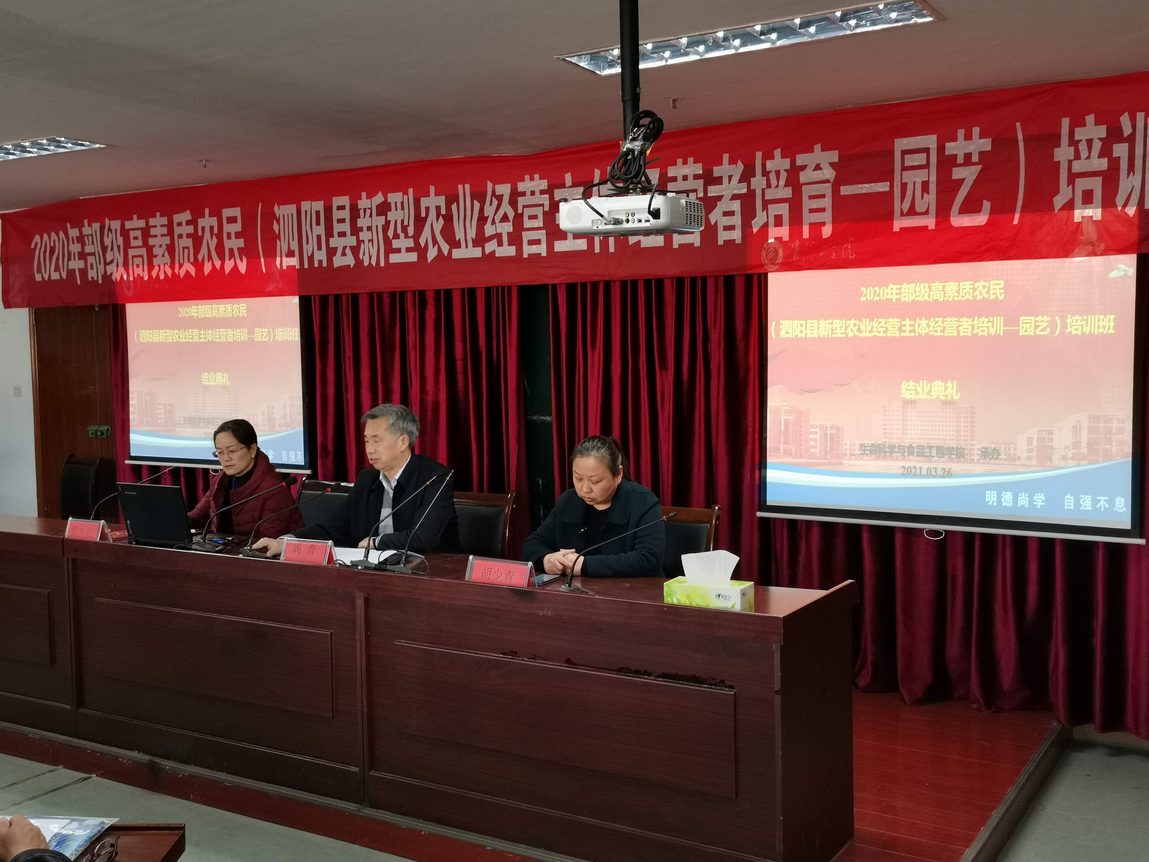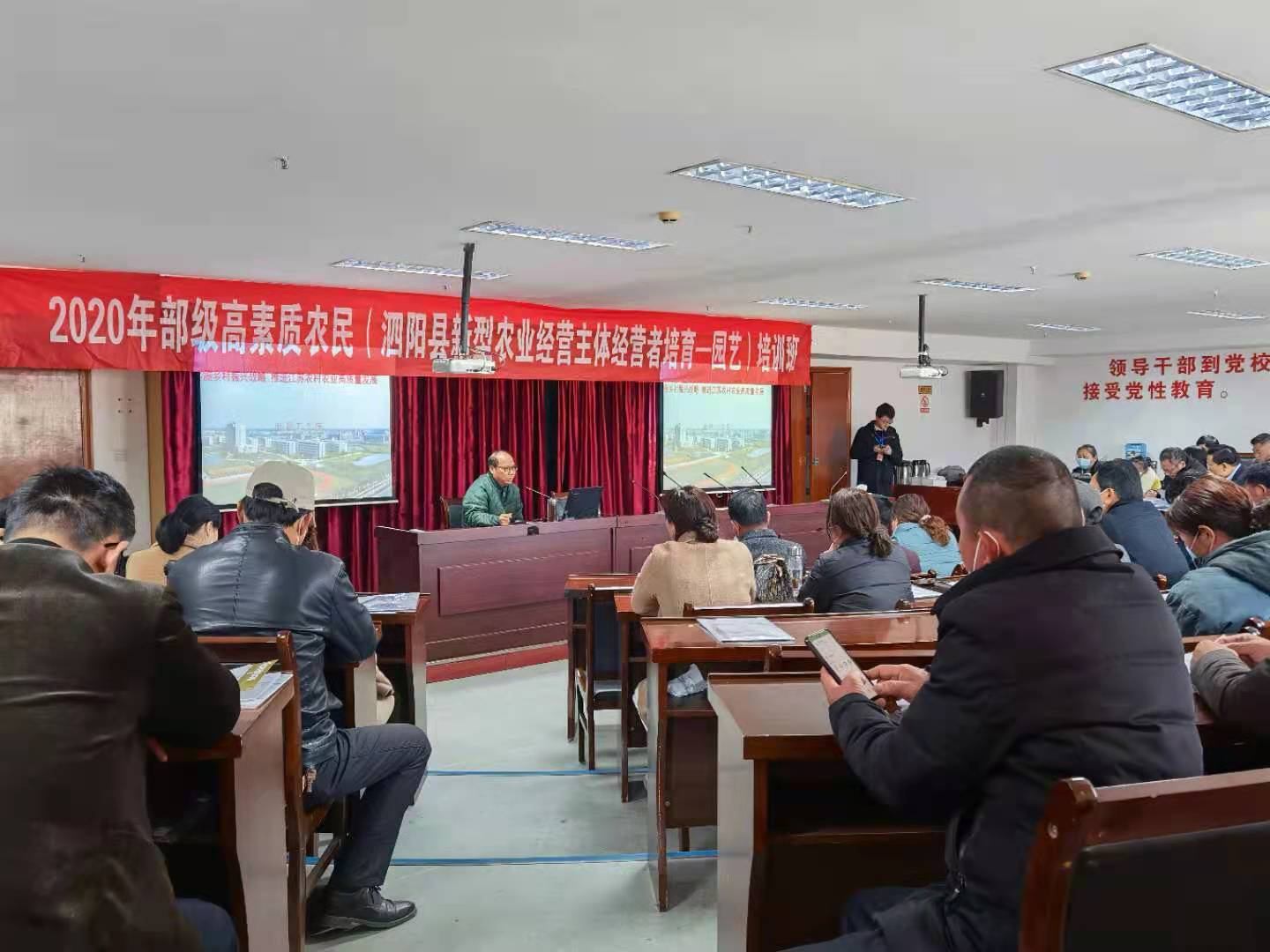 为贯彻落实中央一号文件精神,加快培育有文化、懂技术、善经营、会管理的高素质农民,助推泗阳乡村振兴战略的实施,由我校承办的2020 年泗阳高素质农民培育项目第二阶段工作顺利完成。来自泗阳各乡镇、街道的优秀农民企业家、合作社理事长、家庭农场主、种田大户等农业新型经营主题带头人共220名学员参加了培训。此次培训从3月22日开始,到3月26日结束,培训得到了泗阳县农业农村局领导的大力支持。