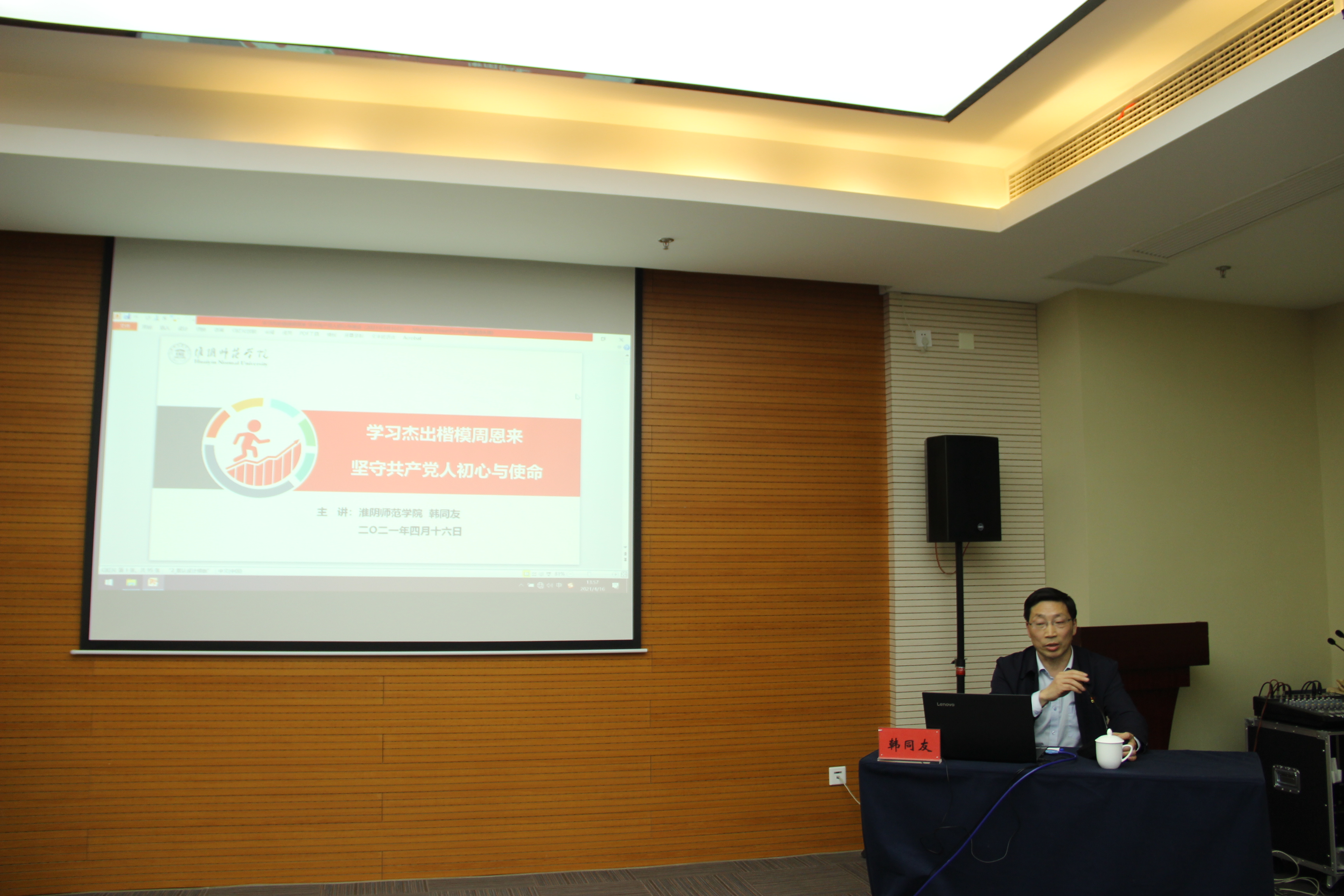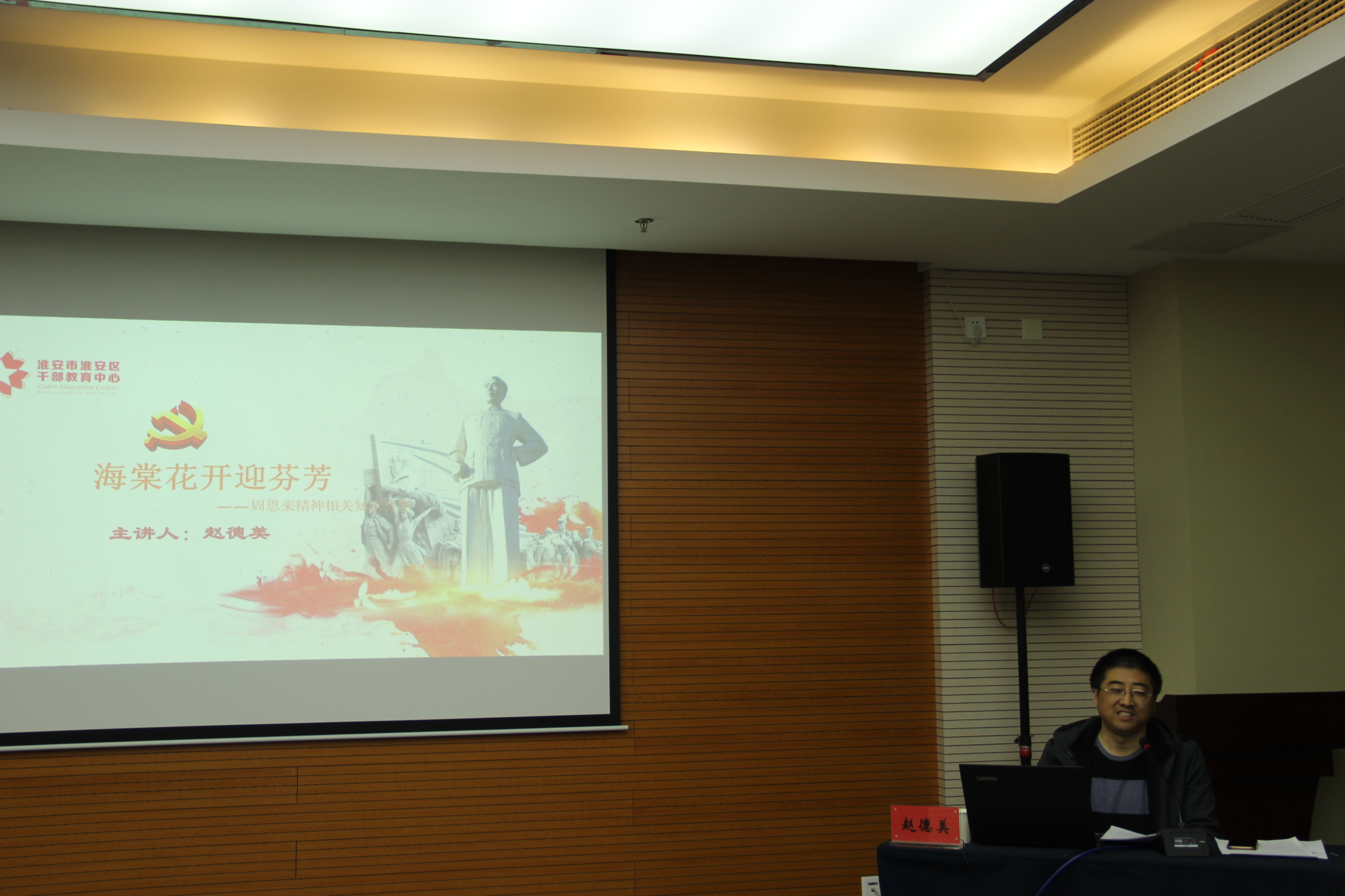本次培训邀请了江苏省周恩来研究会副会长韩同友教授、淮安区政协港澳台和民族宗教委副主任赵德美主任分别作《学习杰出楷模周恩来 坚守共产党人初心与使命》《家人和身边工作人员谈周恩来家风家规》等2个专题讲座。