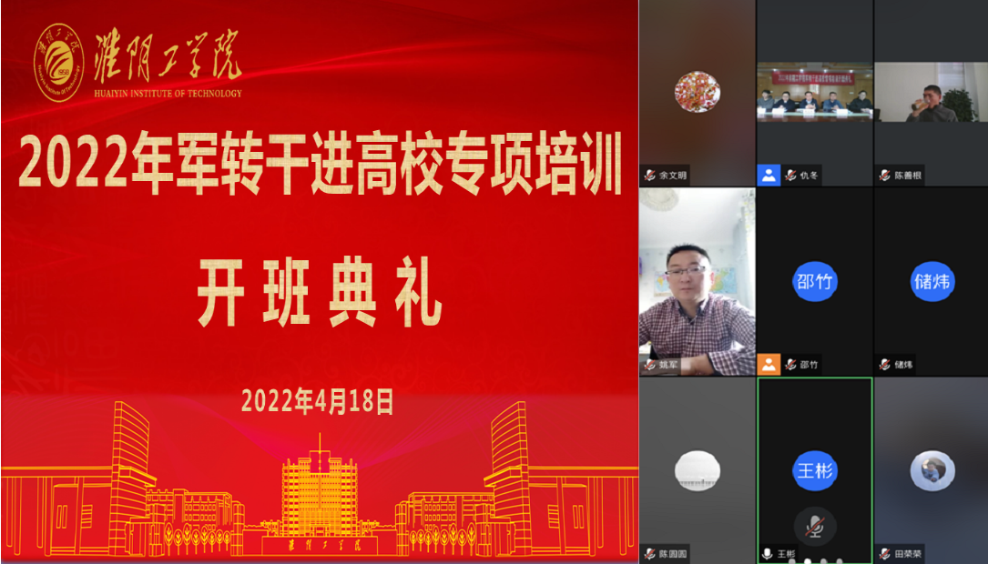 4月18日,我校在北京路校区采用线上线下相结合的方式举行“2022年淮阴工学院军队转业干部进高校专项培训”开班典礼。淮阴工学院继续教育学院院长余文明出席开班典礼并讲话,继续教育学院副院长周定晖主持典礼。