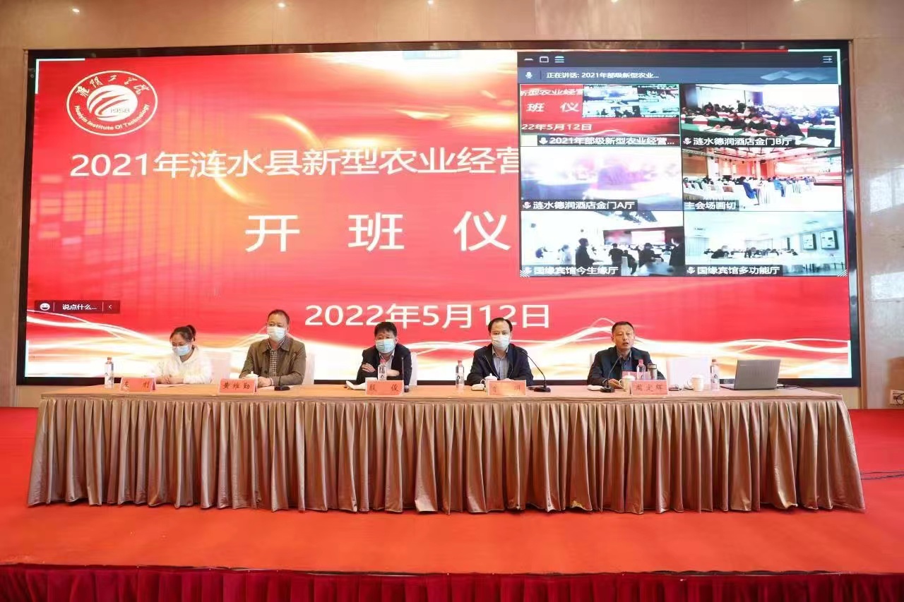 为提升科技赋能水平,发展壮大一批爱农业、懂技术、善经营的高素质农民队伍,5月12日下午,由江苏省农业农村厅主办,涟水县农业农村局、淮阴工学院承办的2021年涟水县新型农业经营主体经营者培训班开班仪式在涟水县举行,培训班设5个会场。涟水县农业农村局副局长殷俊、农广校校长黄维勤、副校长左利、淮阴工学院继续教育学院院长余文明及参训学员近220多人出席开班仪式。继续教育学院副院长周定晖主持开班仪式。