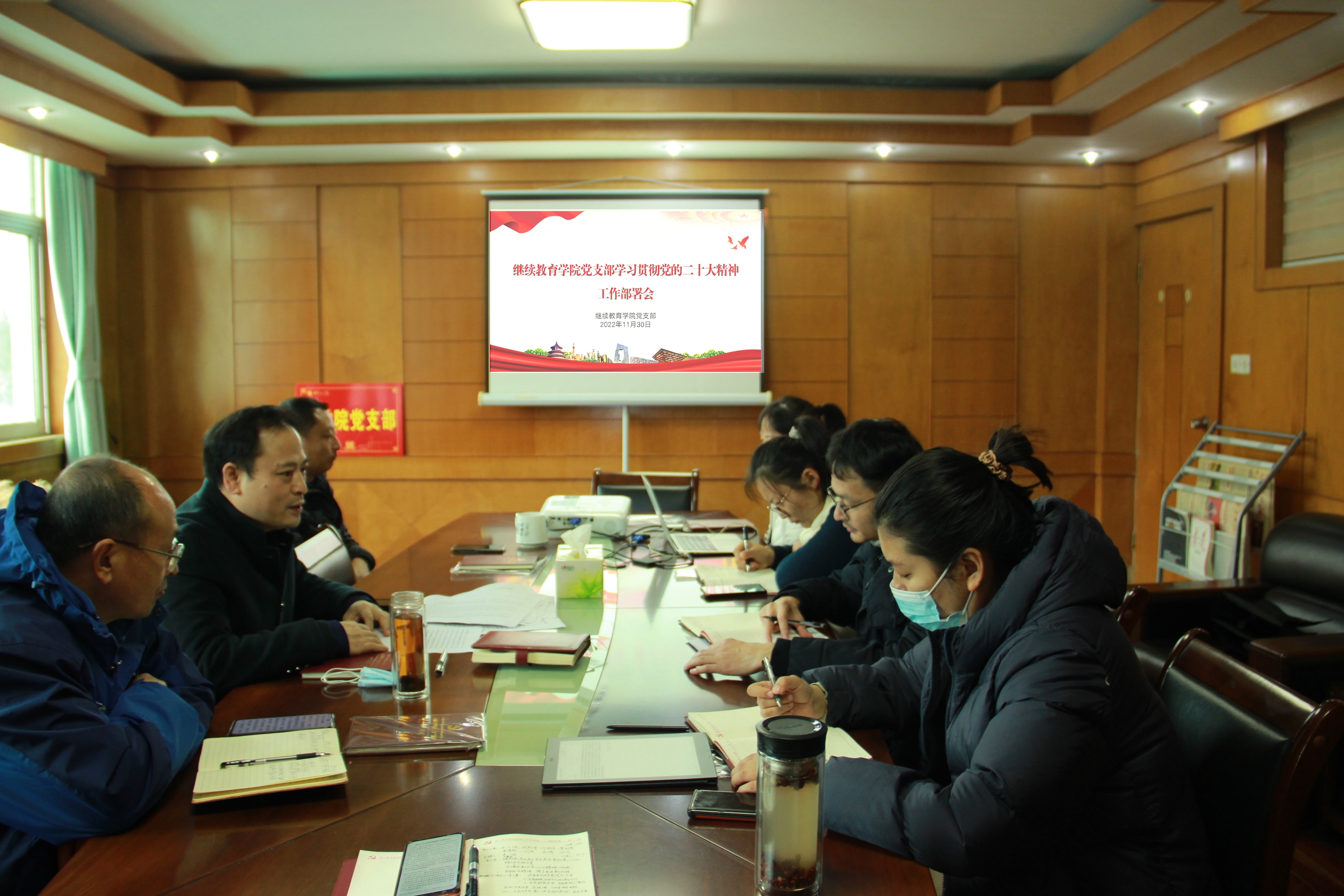 会议对继续教育学院学习贯彻党的二十大精神进行工作布置。会议强调,要系统推进专题学习活动,聚焦主题内容,创新学习形式,引导党员干部师生在学深悟透上下功夫,努力营造学习贯彻浓厚氛围;要坚持学习和工作实践相结合,聚焦任务要求,强化贯彻落实,凝聚奋进力量,不断推进继续教育学院各项工作高质量发展;要加强组织领导,精心设计实施,坚持党员领导干部带头示范引领,充分发挥党支部战斗堡垒作用,扎实推进学习贯彻党的二十大精神的各项工作取得成效。