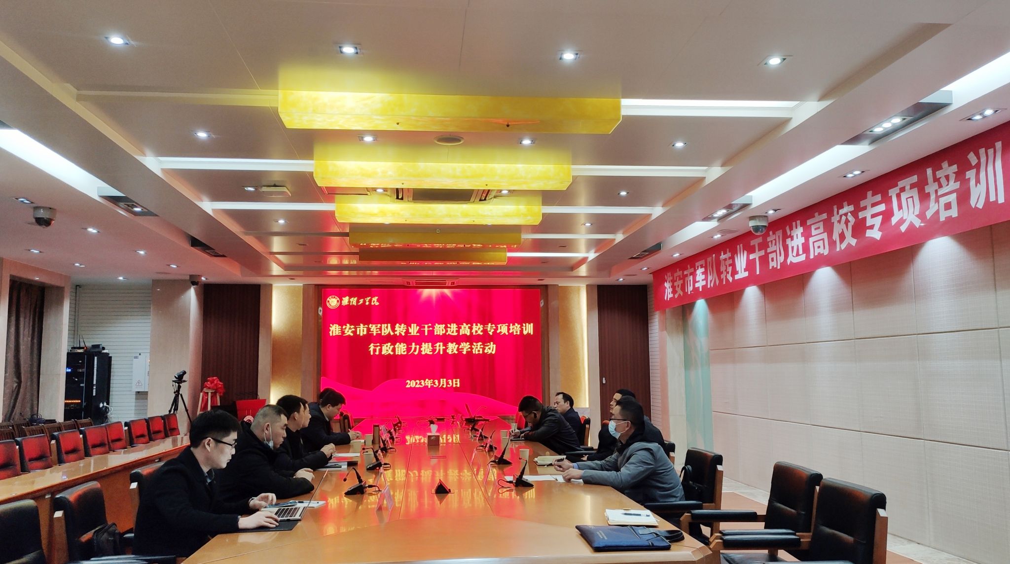 3月3日下午,我校组织淮安市2022年军转干进高校专项培训行政能力提升教学活动。2022年15名军转干培训学员、继续教育学院相关老师参加教学活动,活动由继续教育学院院长余文明主持。