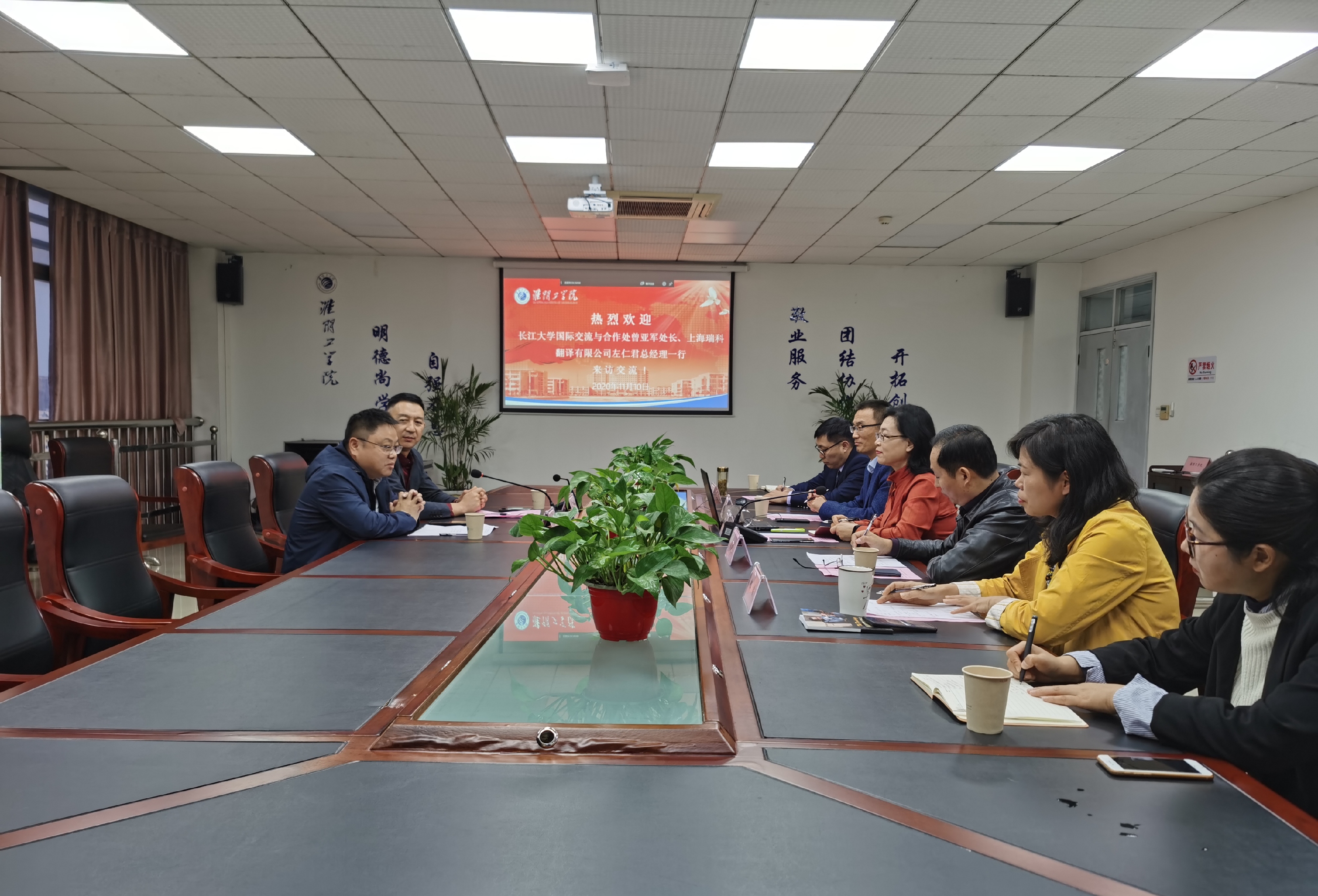 11月10日,长江大学国际交流与合作处处长曾亚军、上海瑞科翻译有限公司左仁君总经理一行来我校访问交流。会议在枚乘路校区YF1203举行,国际合作交流处处长徐晓梅主持会议。