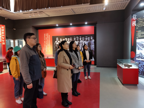 国际处党小组全体党员在纪念馆前举行重温入党誓词和党章诵读活动。党小组负责人、国际处副处长郁敏带领全体党员在党旗下重温了入党誓词并诵读党章,学习我党对党员干部的基本要求,进一步加深对于作为党员干部需要做到信念坚定、为民服务、勤政务实、敢于担当、清正廉洁等要求的认识。