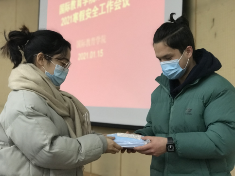会后,国教院为在校留学生分发学校提供的口罩及消毒液等相关疫情防护用品。