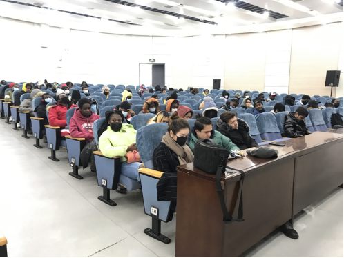 留学生管理科副科长赵黎平为全体在校留学生细致讲解寒假留校的相关规定及注意事项,包括开学时间、疫情防控期间留学生管理规定、外出请假手续、宿舍纪律等,并针对留学生提出的问题和困难进行解答。