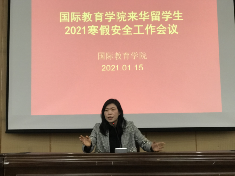 为了保障寒假留校留学生的安全与稳定,做好做细校园疫情防控工作,1月15日,国际教育学院召开来华留学生2021寒假安全工作会议。国教院副院长郁敏、相关年级辅导员、班主任及全体留学生参加了此次会议。