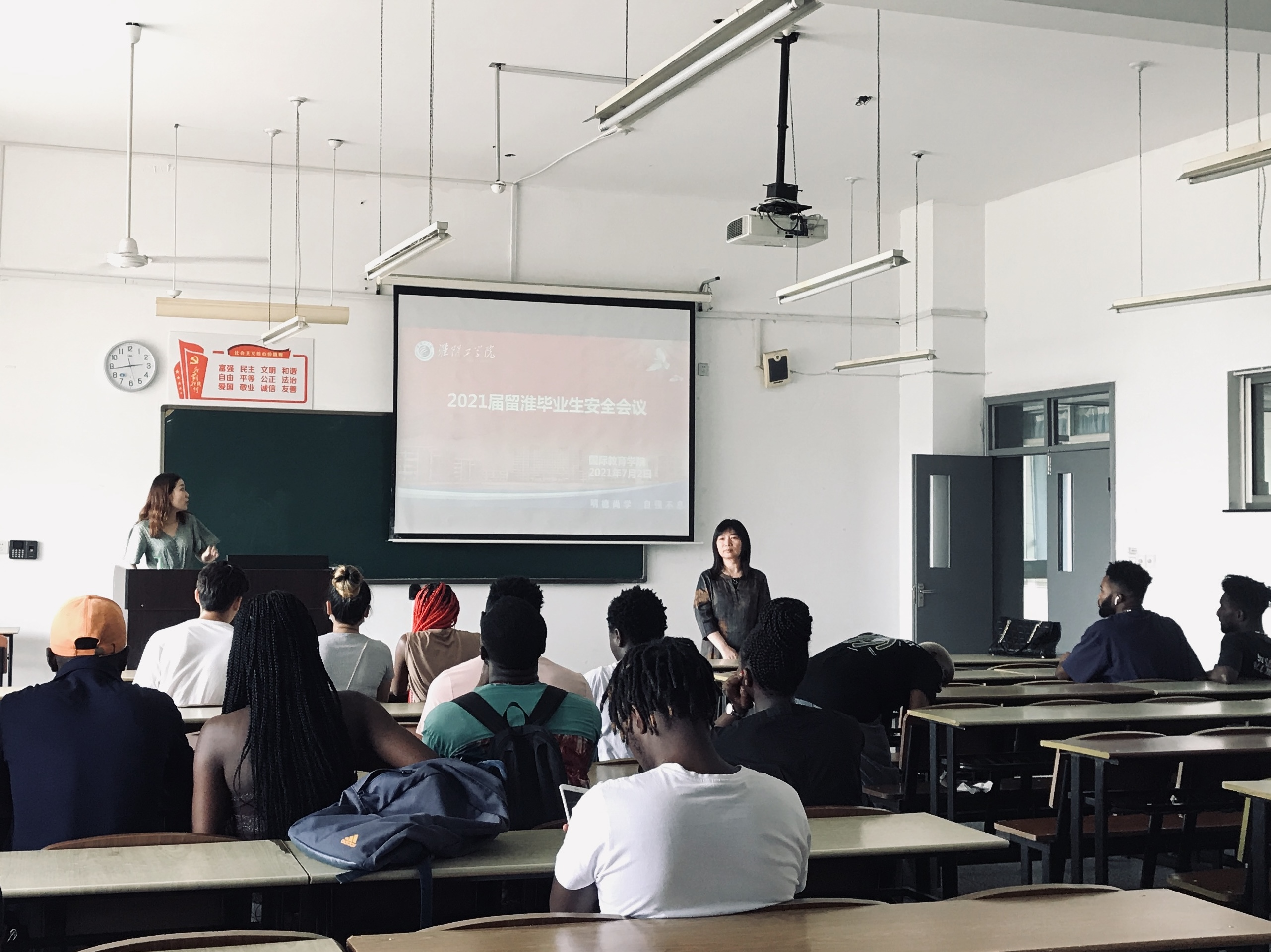 此次安全会议进一步提高了在淮留学生毕业生的法律及政策意识,为来华留学毕业生安全离校离淮发挥保障作用。