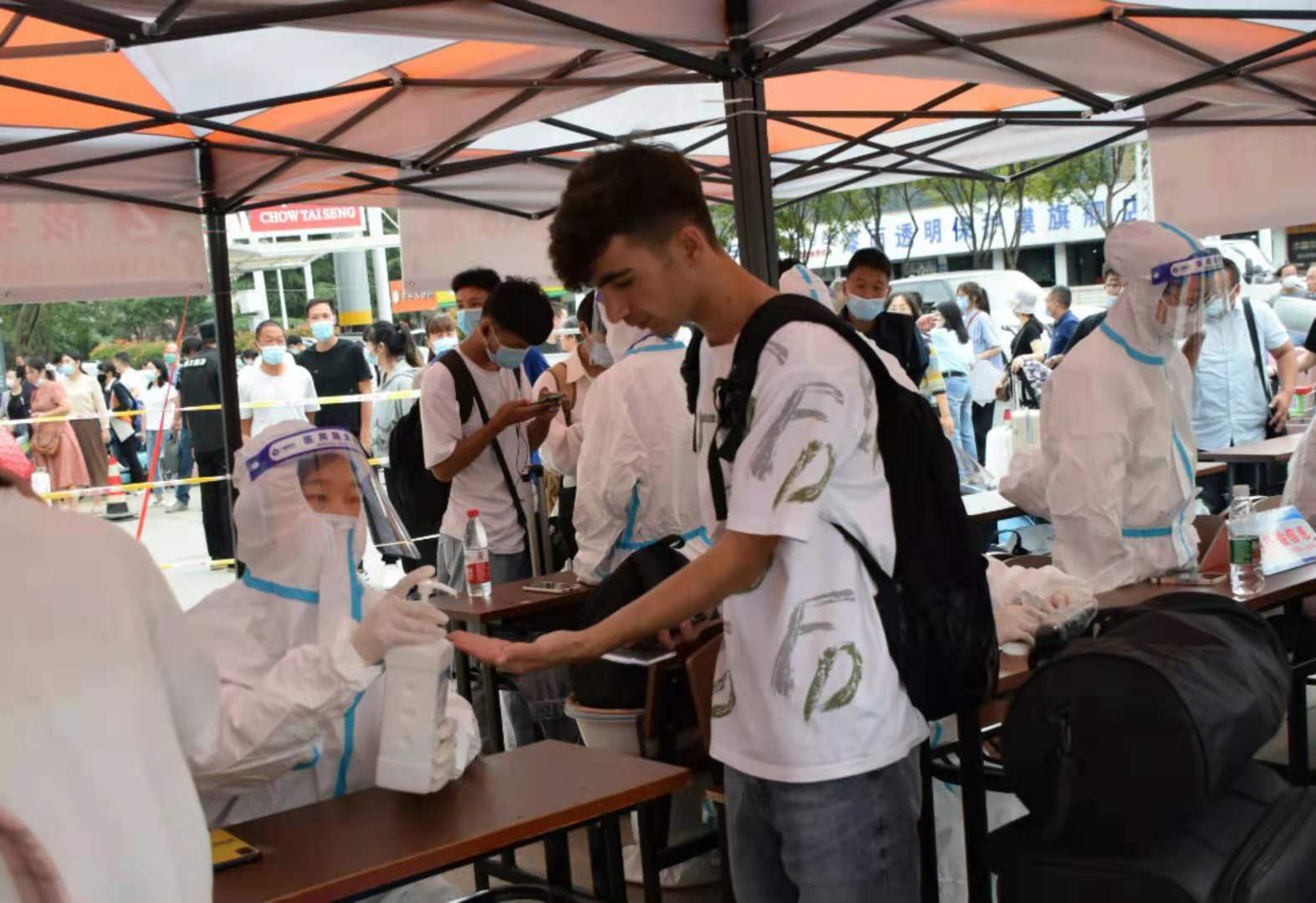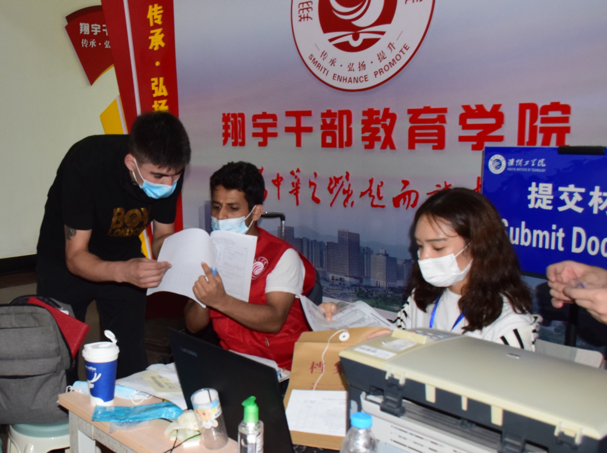 为顺利迎接新生入学,国际教育学院按照学校相关文件精神,在后勤管理处、保卫处、学生工作处等部门的协作下,校门口留学生通过测量体温、查验苏康码绿码、行程码绿码、手部消毒、更换口罩、行李消毒、通过热成像二次测温通道等环节,方能入校,在疫情防控上确保细致、安全。