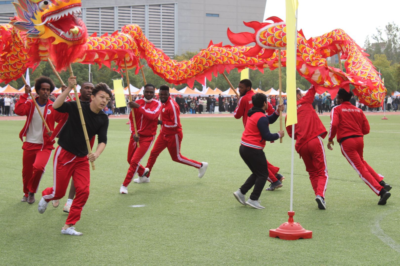此次国教院参加了男子400米、800米、男子跳高等多项单人运动和篮球投篮、4×100米接力、15×400米接力等多项集体运动,并取得了佳绩。来自刚果(布)的李小龙(MATONDO NEVILLE EXODE DEFNA)、来自加纳的志高远(ADDO GIDEON ALPHA)分别斩获男子400米和800米的冠军。在男子1500米项目中,志高远(ADDO GIDEON ALPHA)在被踩掉一只鞋的情况下,全程只穿一只鞋的情况下获得亚军,展现了顽强拼搏的非凡毅力。来自刚果(布)的帕里克(DOSSI HERODE PATRICK CHRIST)在男子跳高项目中获得第二名。此外,留学生们在引体向上、4×100米接力、15×400米大接力等多个项目中获奖,展现了留学生们良好的身体素质和精神风采。此次运动会中,留学生们还参加了竞速舞龙,体验中国传统运动的魅力。
